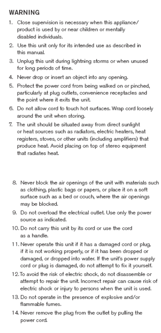 Modifications not authorized by the manufacturer may void the user’s authority to operate this