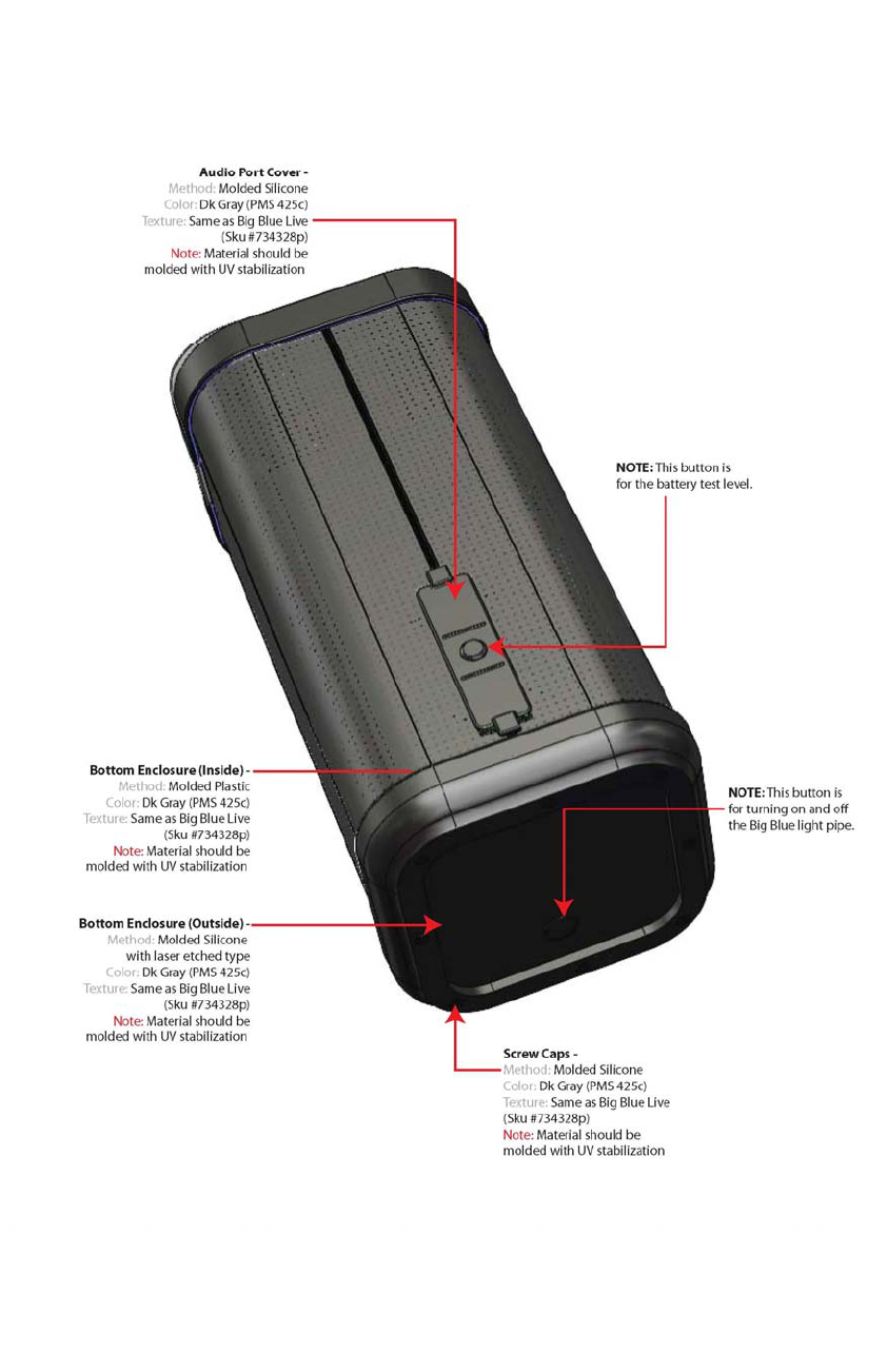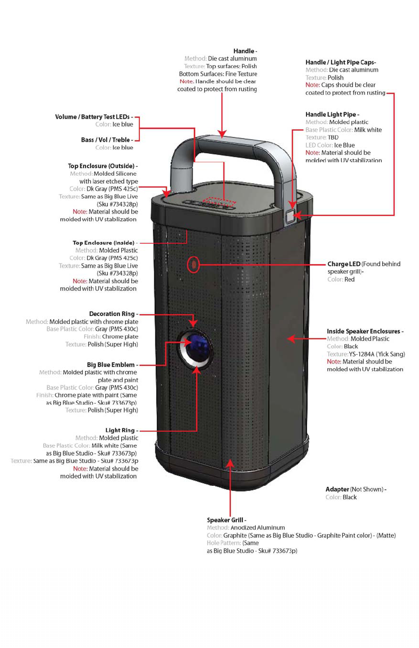 3.To turn Big Blue Party off, press the Power button. A tone will sound and the LED RING will