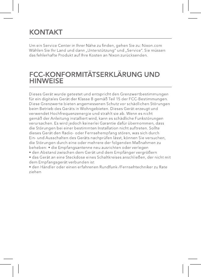 Hiermit erklärt Nixon die Übereinstimmung des Gerätes mit den grundle-