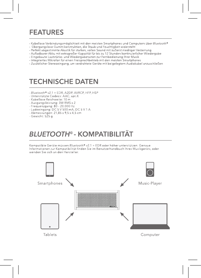 über Bluetooth verbunden ist. Die Musikwiedergabe wird durch ein- und