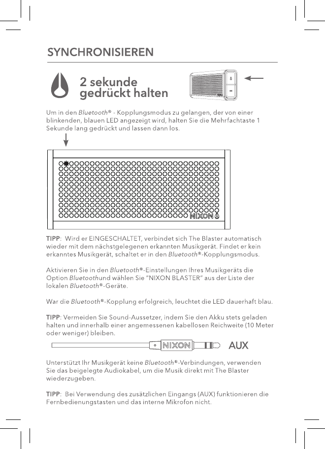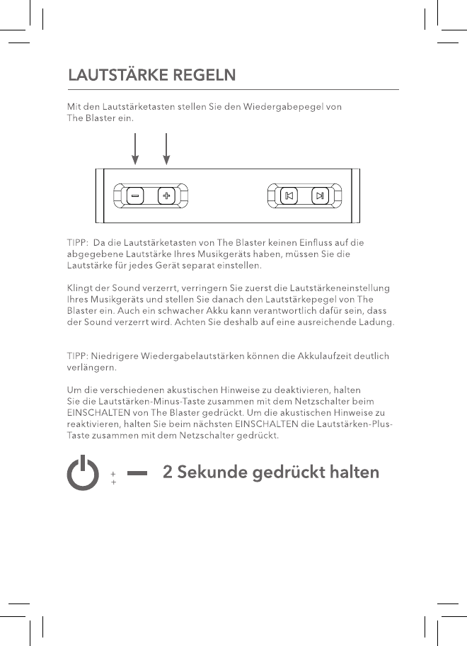 TIPP: Da die Lautstärketasten von The Blaster keinen Einfluss auf die
