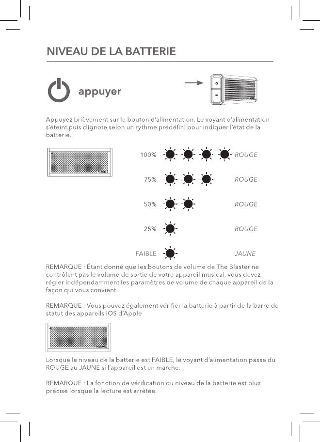 reste allumé si The Blaster est déjà sous tension, ou s’éteint complètement