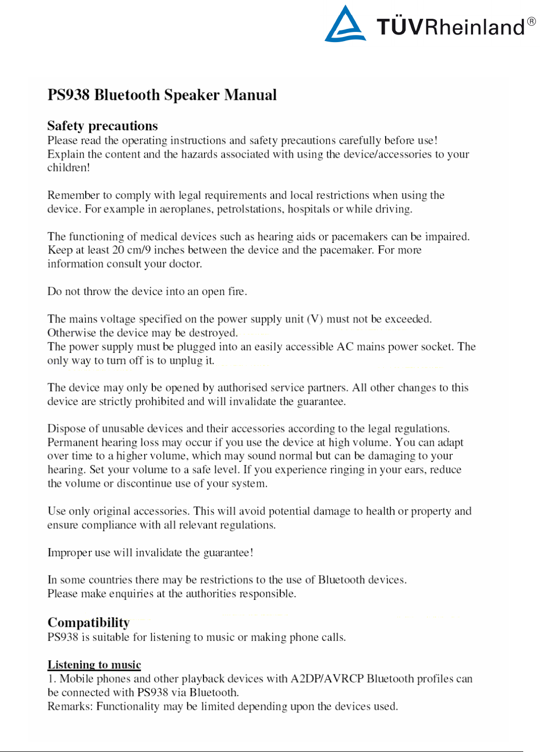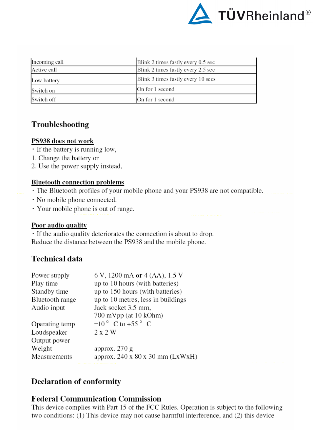 Plastoform PS938 Bluetooth Stereo Speaker User Manual 14014146 002 PS938 FCC report