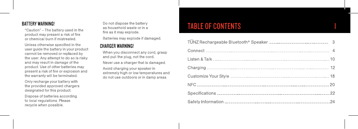 Plastoform TUNZ Rechargeable Bluetooth Speaker User Manual dddL