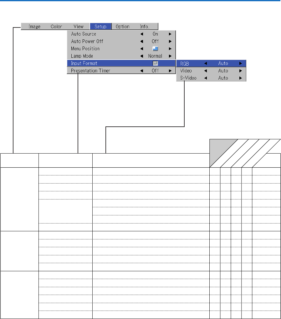 The projector automatically identifies the signal input from the computer and selects the optimum resolution as shown on the table