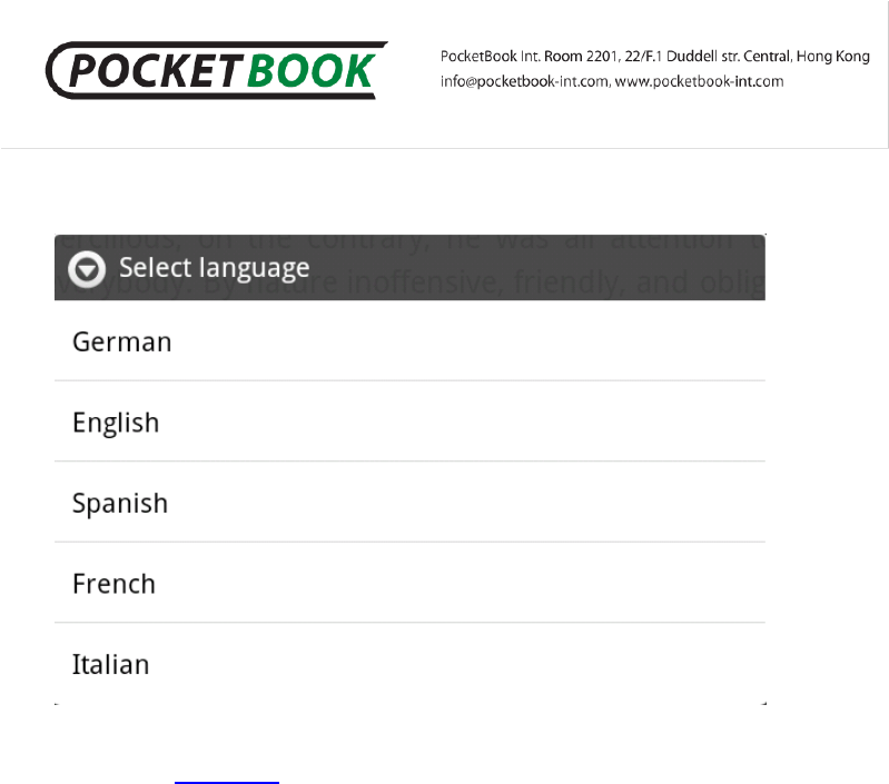 Designed by Pocketbook Int. Room 2201, 22/F.1 Duddell str. Central, Hong Kong
