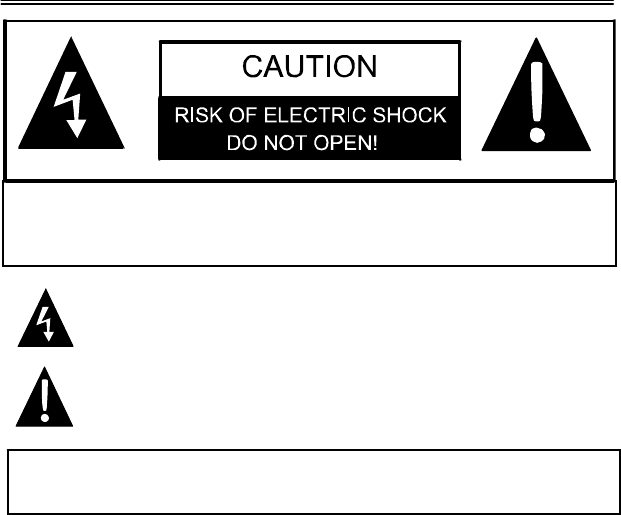 CAUTION: TO REDUCE THE RISK OF ELECTRIC SHOCK, DO NOT