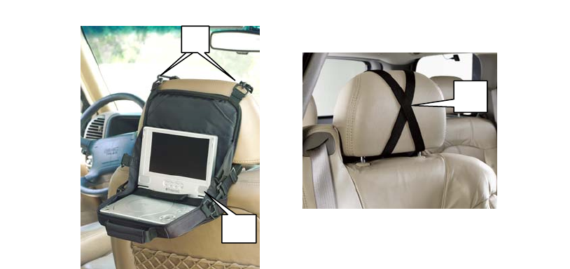 To attach the DVD Player Case to a seat back (Photos 1 & 2):