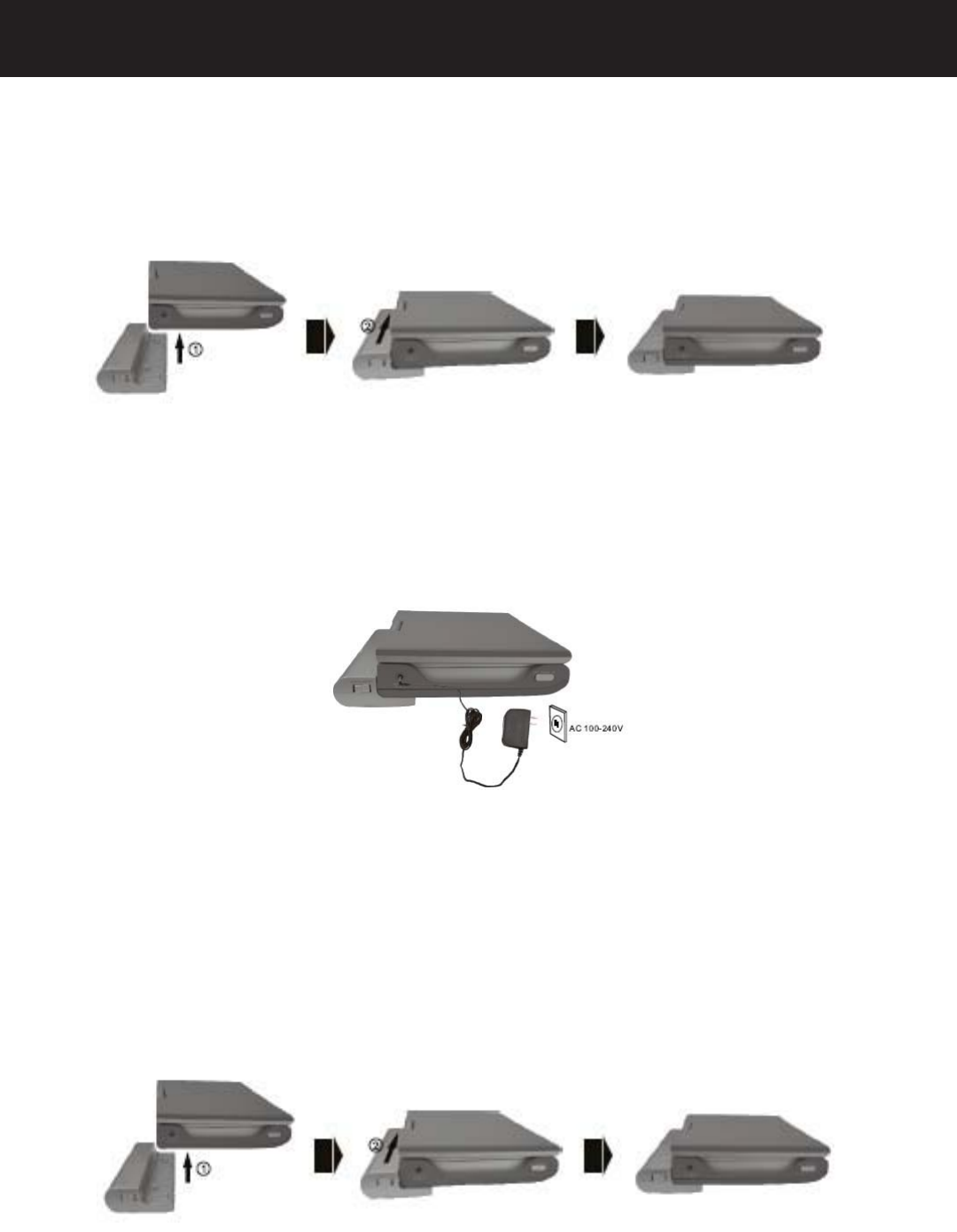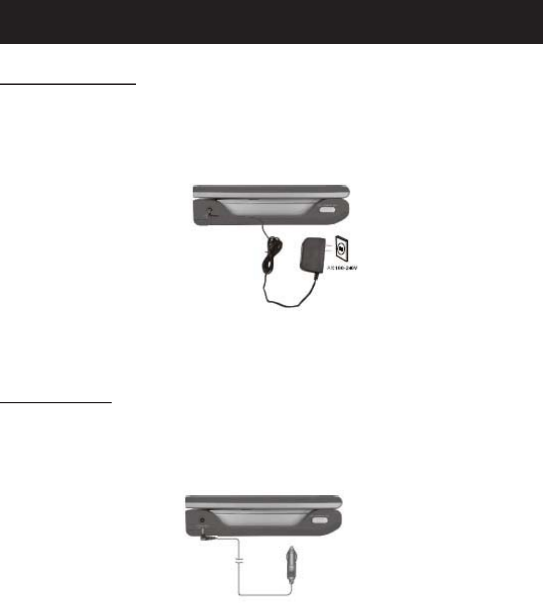Connect the supplied power adapter to the side of the DVD player in the slot marked “Power In”. Plug the two-
