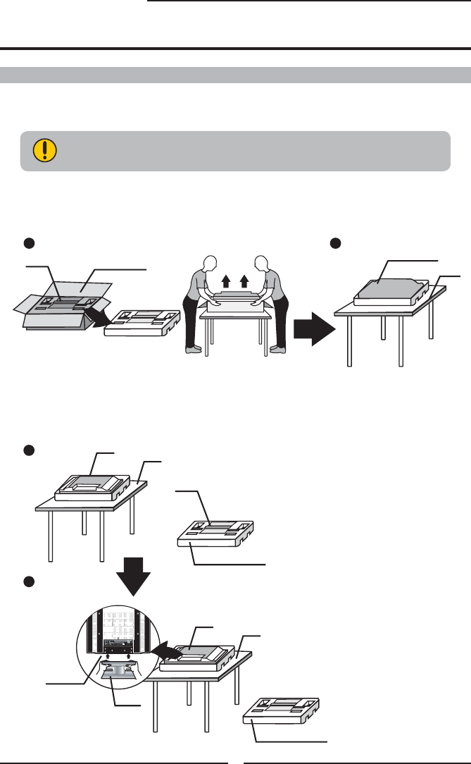 ▪ Do not place the equipment on any uneven or unstable carts, stands, tables, shelves etc.