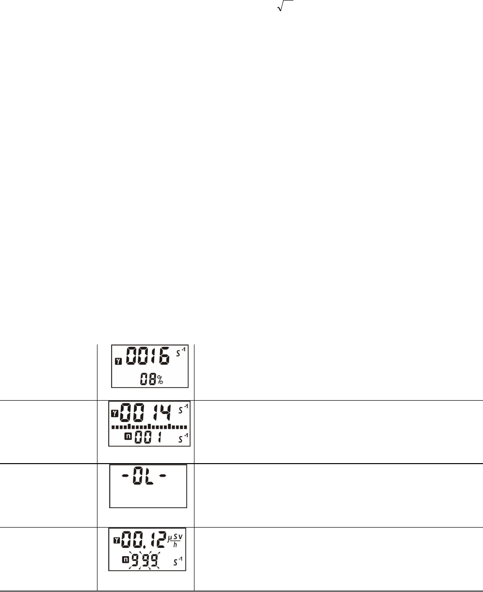 Indication mode of the average speed of gamma radiation counting over the time of accumulation. ..17