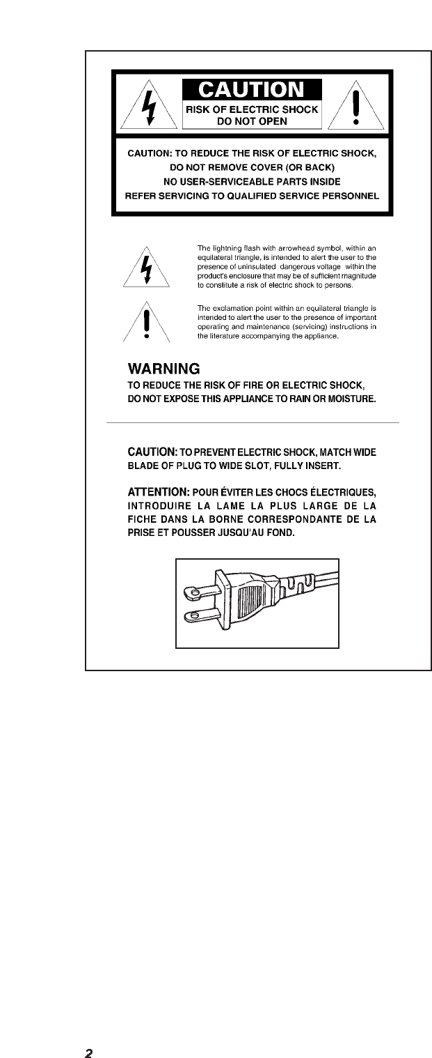 plate and insert polarized AC plug into wall outlet (or power strip) as per safety instructions on inside cover of this manual.