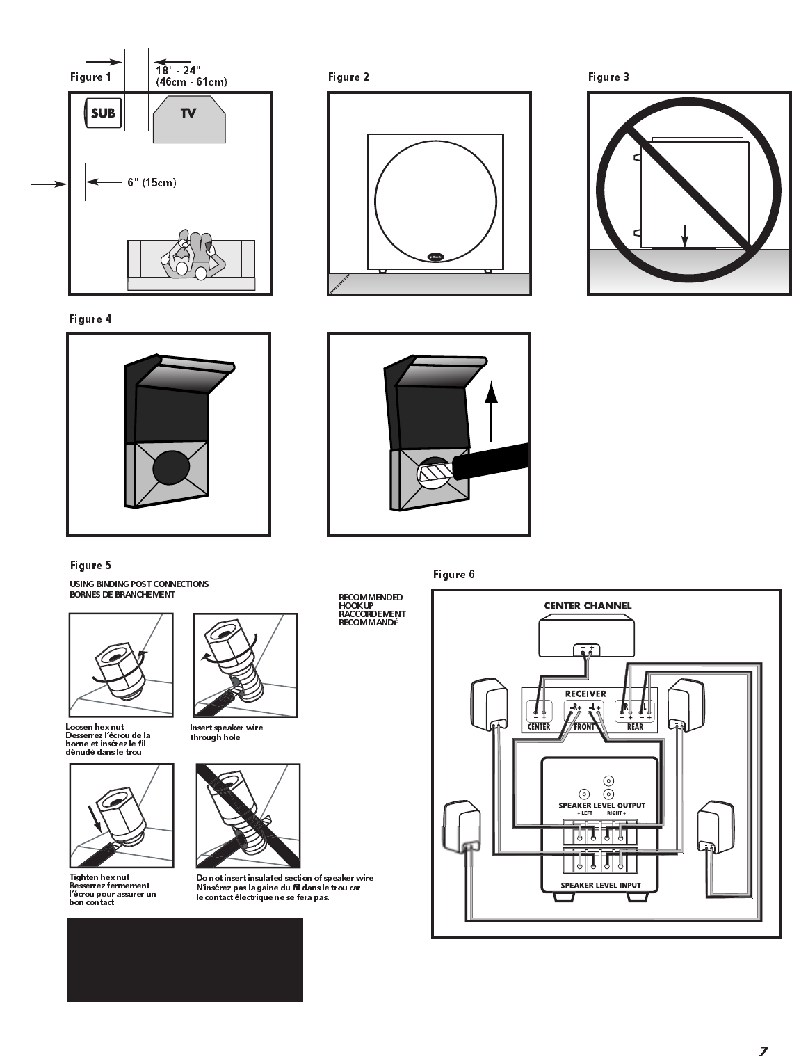 inches (15cm) of space between the subwoofer driver and a wall or obstruction (Figure 1). The subwoofer should only be placed on its base (Figure 2). It may lie on its side, but