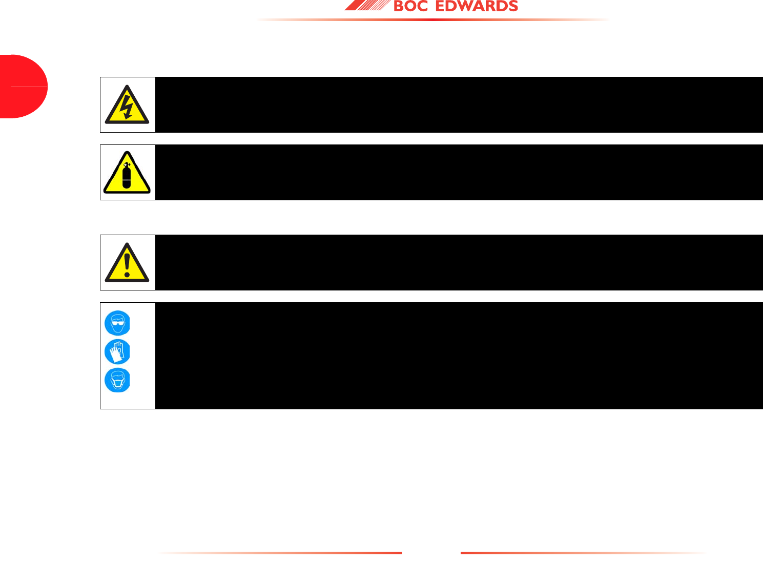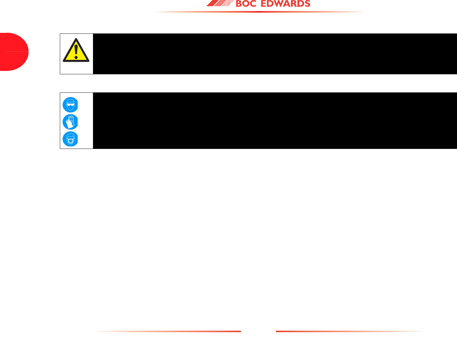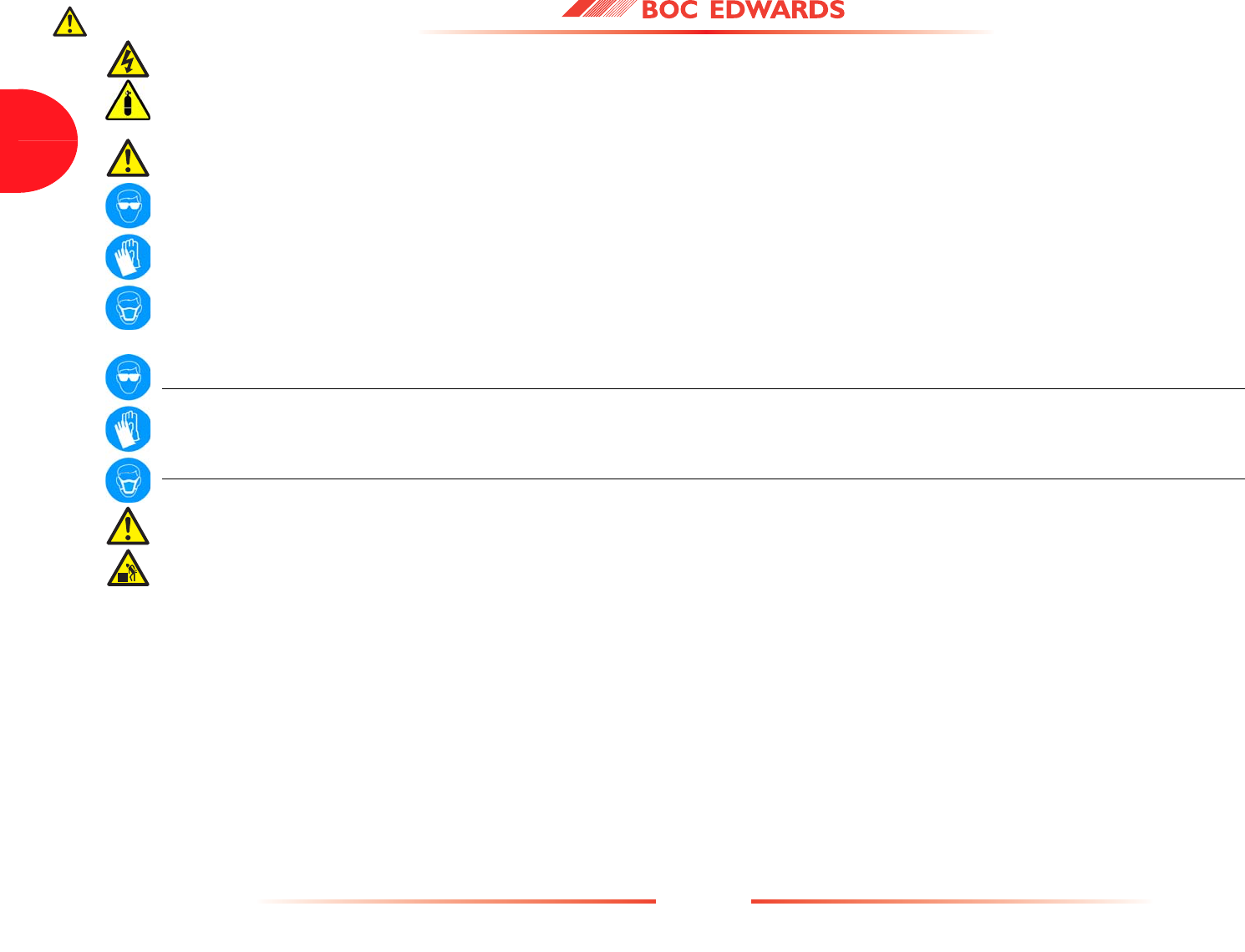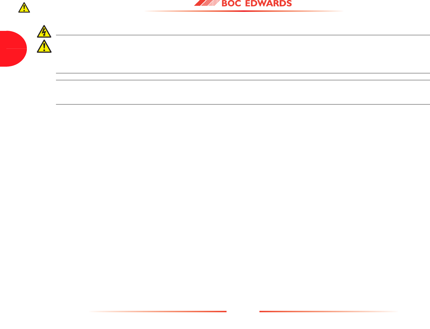 Detailed safety information is given in Section 3 and BOC Edwards Publication Number P300-20-000 'Vacuum Pump and Vacuum System Safety'.
