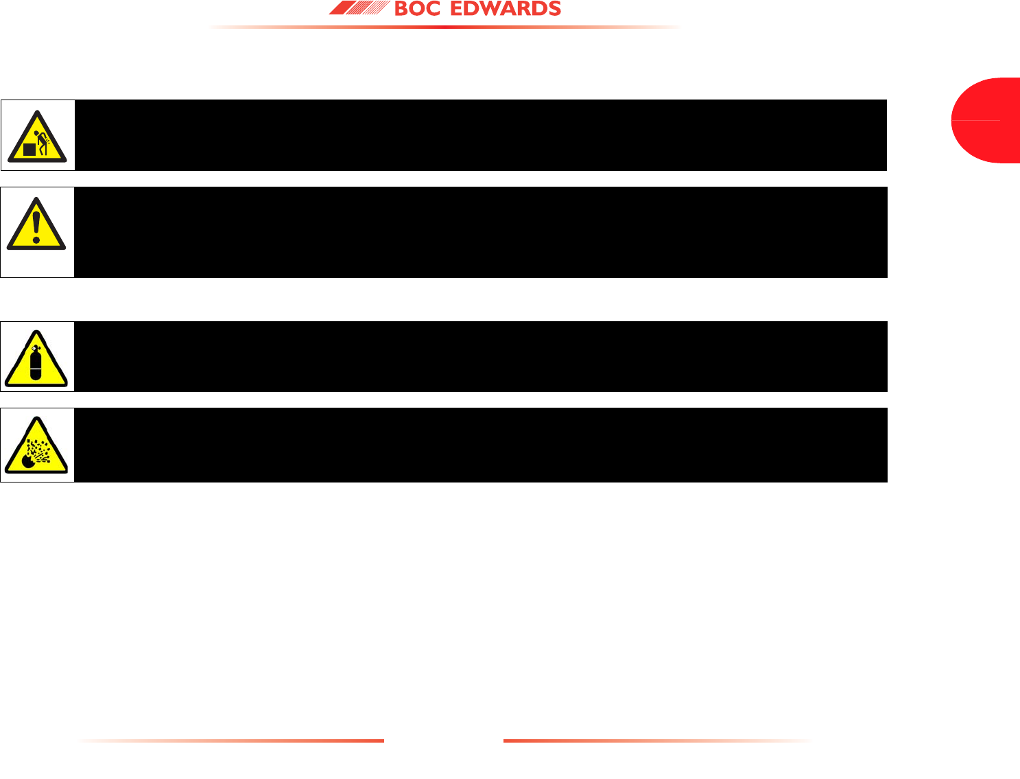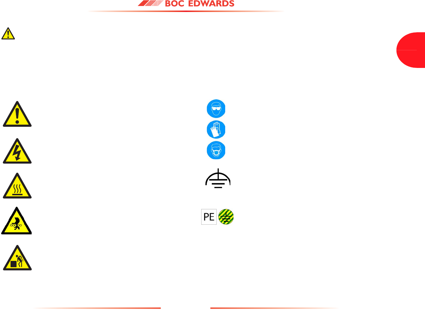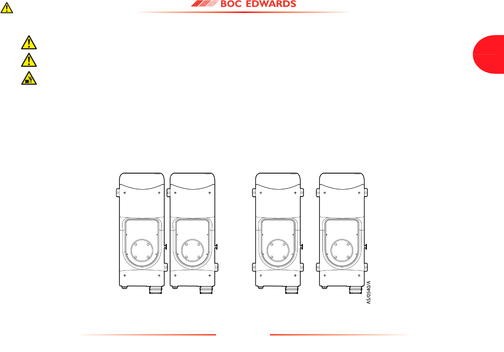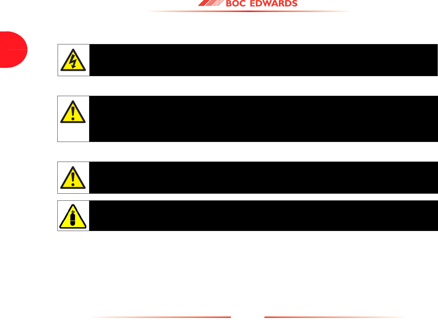 Detailed safety information is given in Section 3 and BOC Edwards Publication Number P300-20-000 'Vacuum Pump and Vacuum System Safety'.