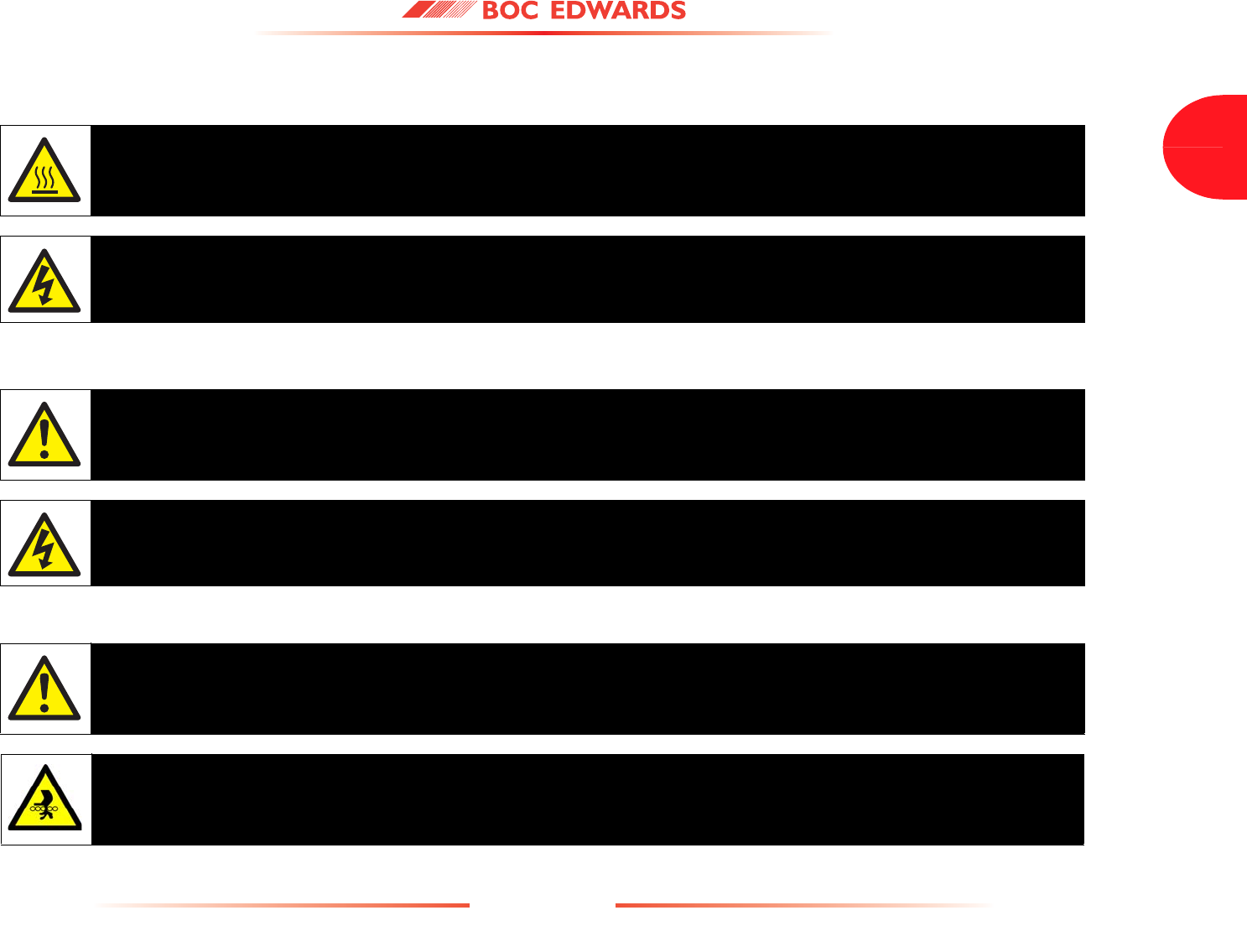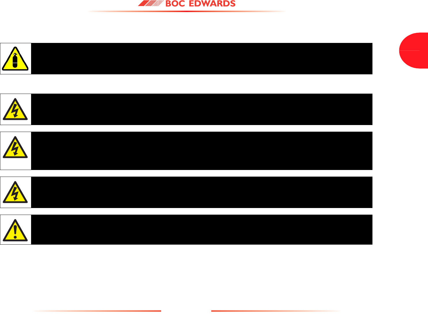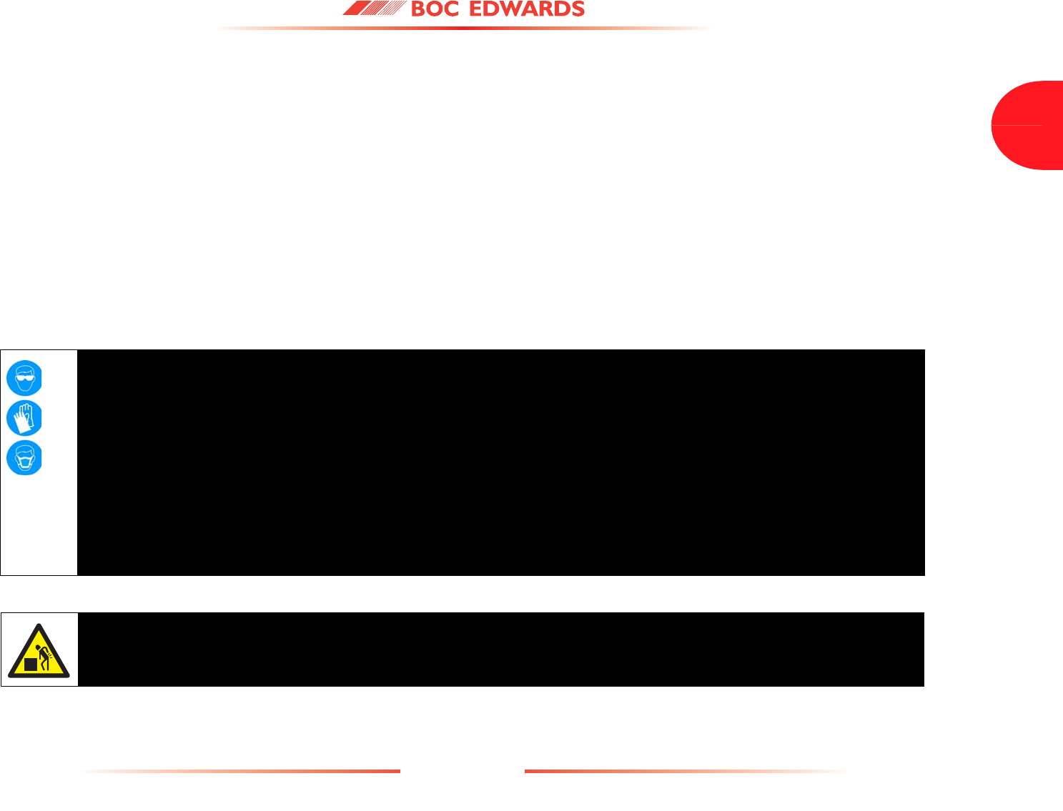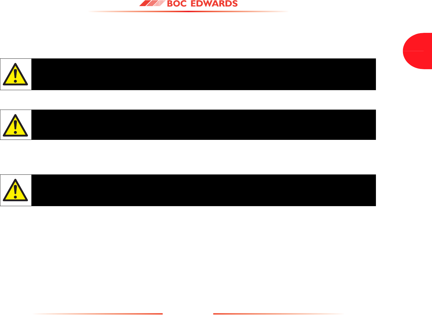 Detailed safety information is given in Section 3 and BOC Edwards Publication Number P300-20-000 'Vacuum Pump and Vacuum System Safety'.