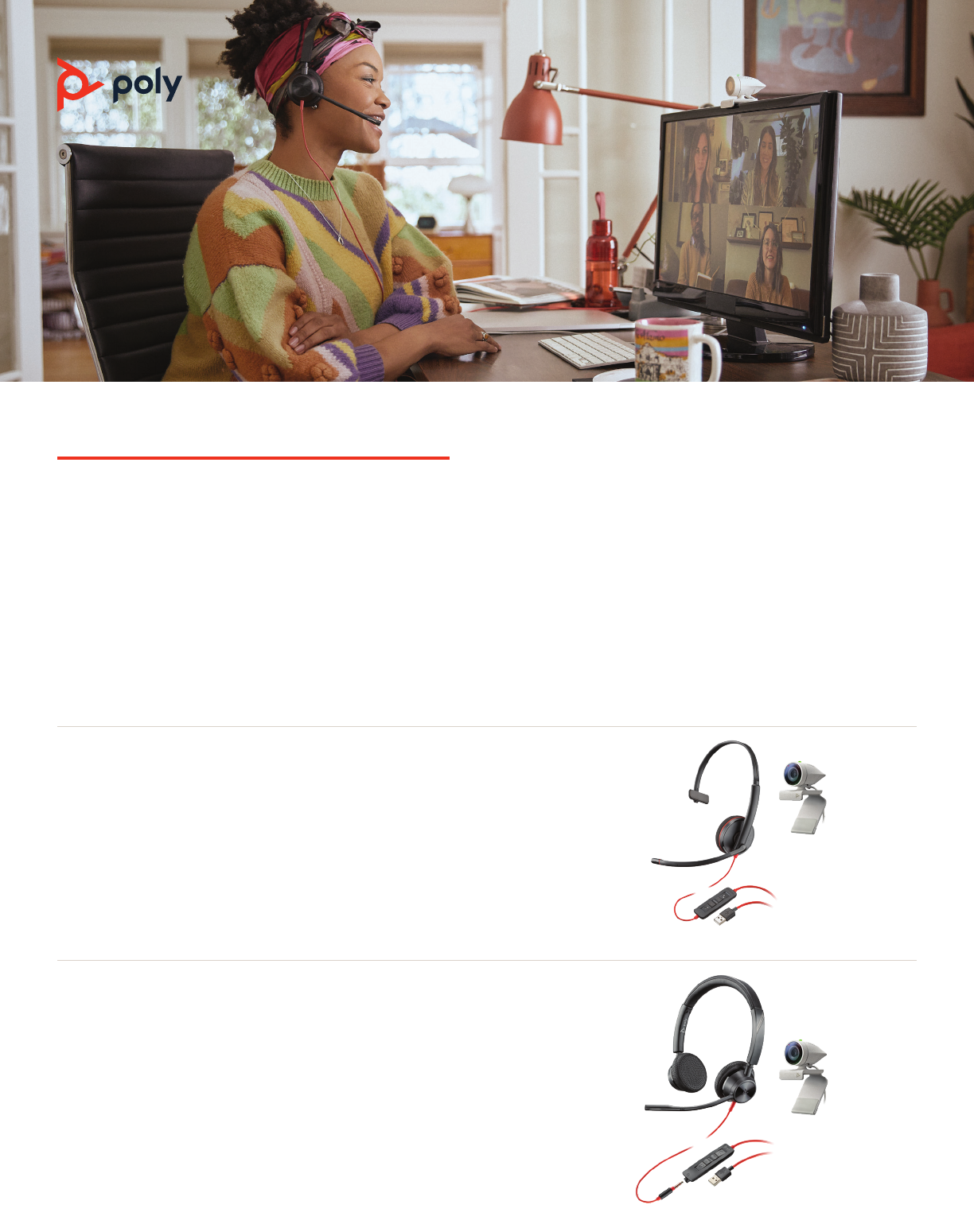 Each one includes a webcam and headset or personal speakerphone in one package that’s easy to set up.