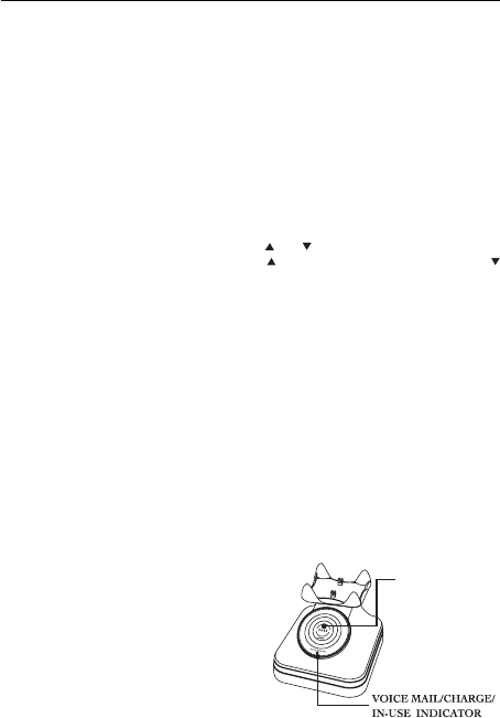 Indicator (19) on the base flashes when the phone is not in use to indicate there is a voice