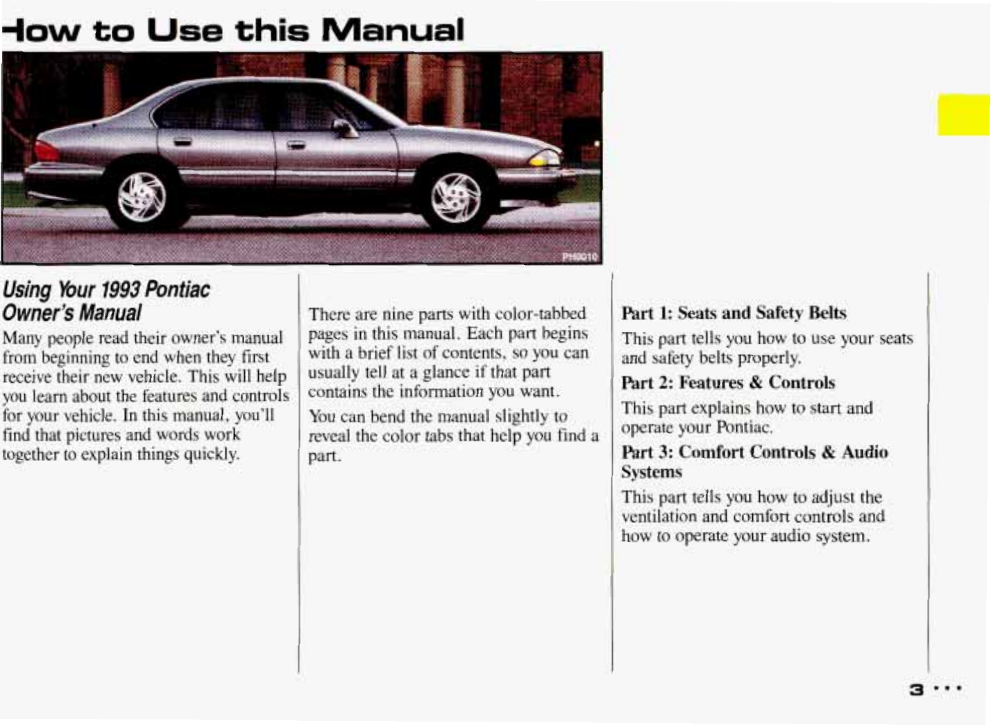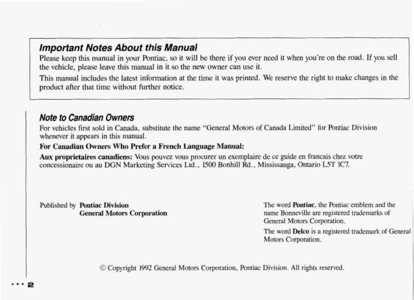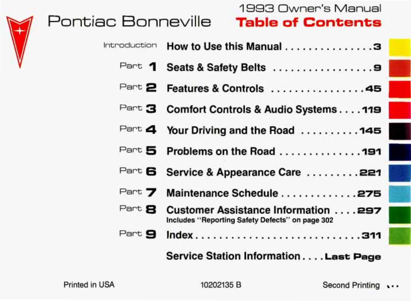 Pontiac 1993 Bonneville Owners Manual Owner's