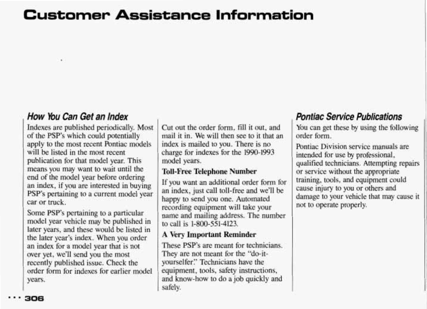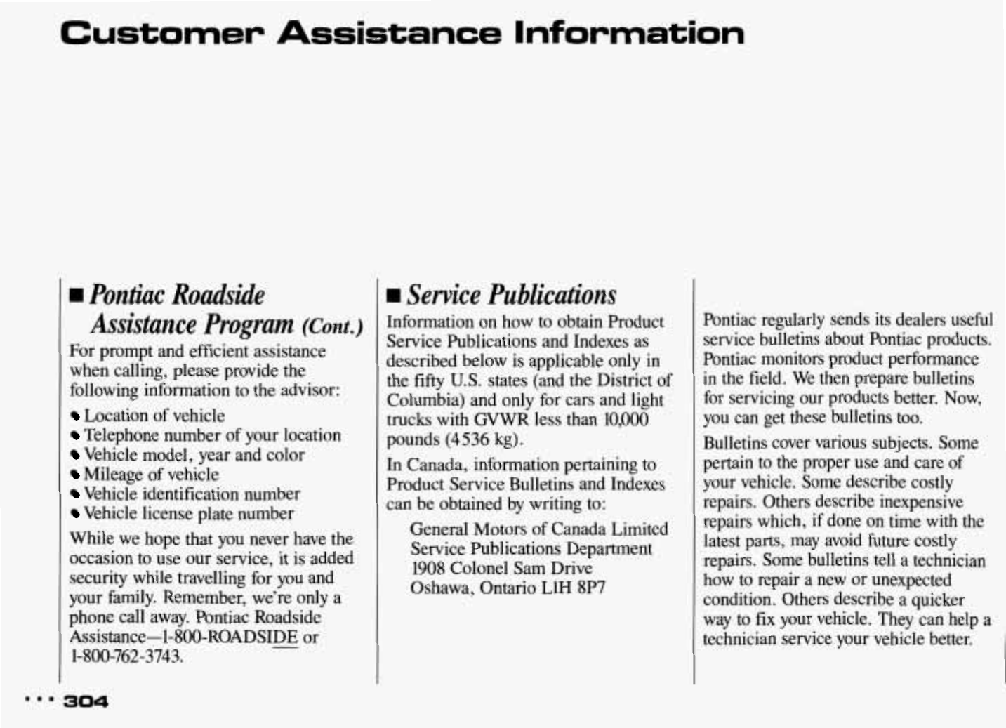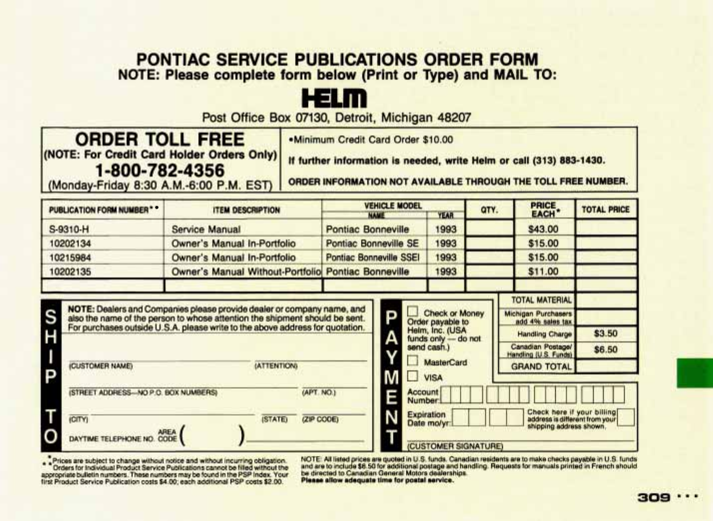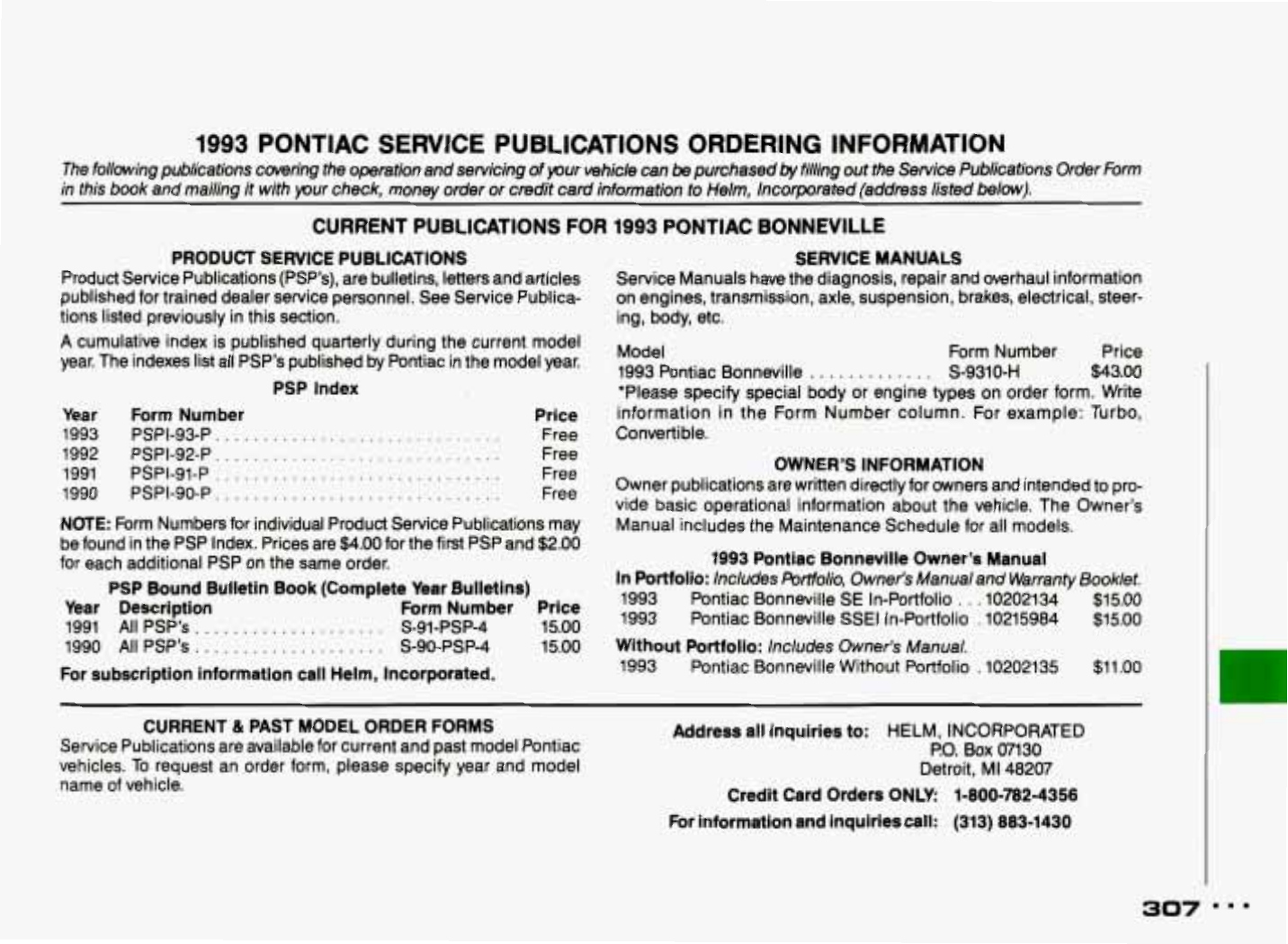 Pontiac 1993 Bonneville Owners Manual Owner's