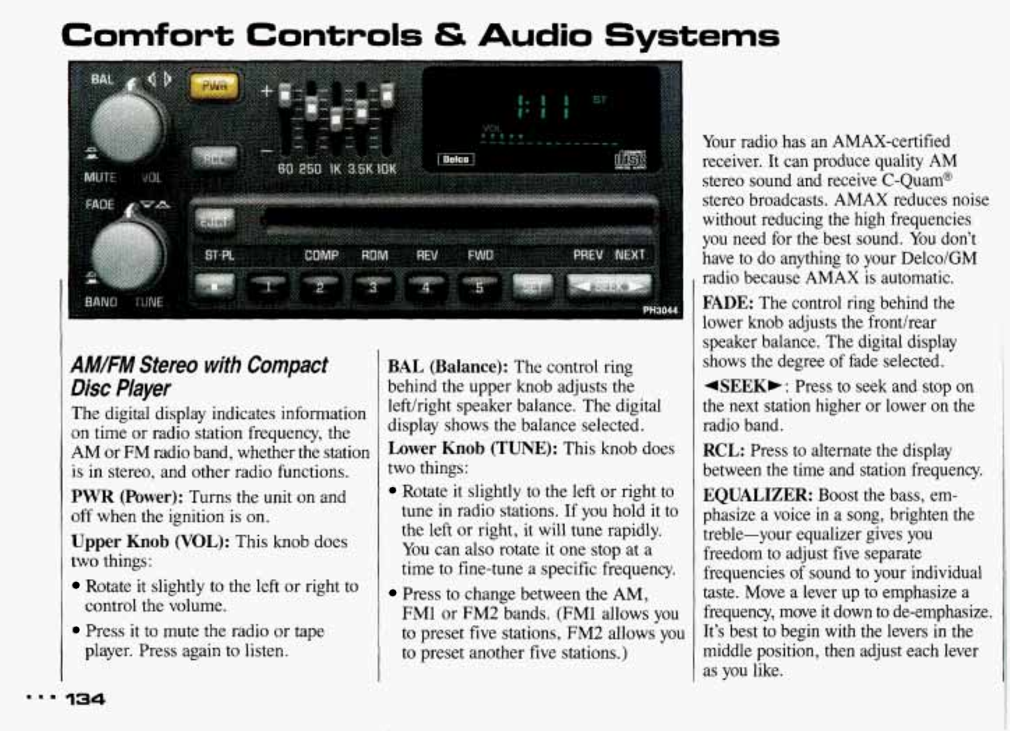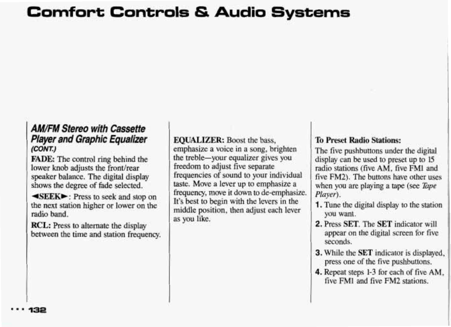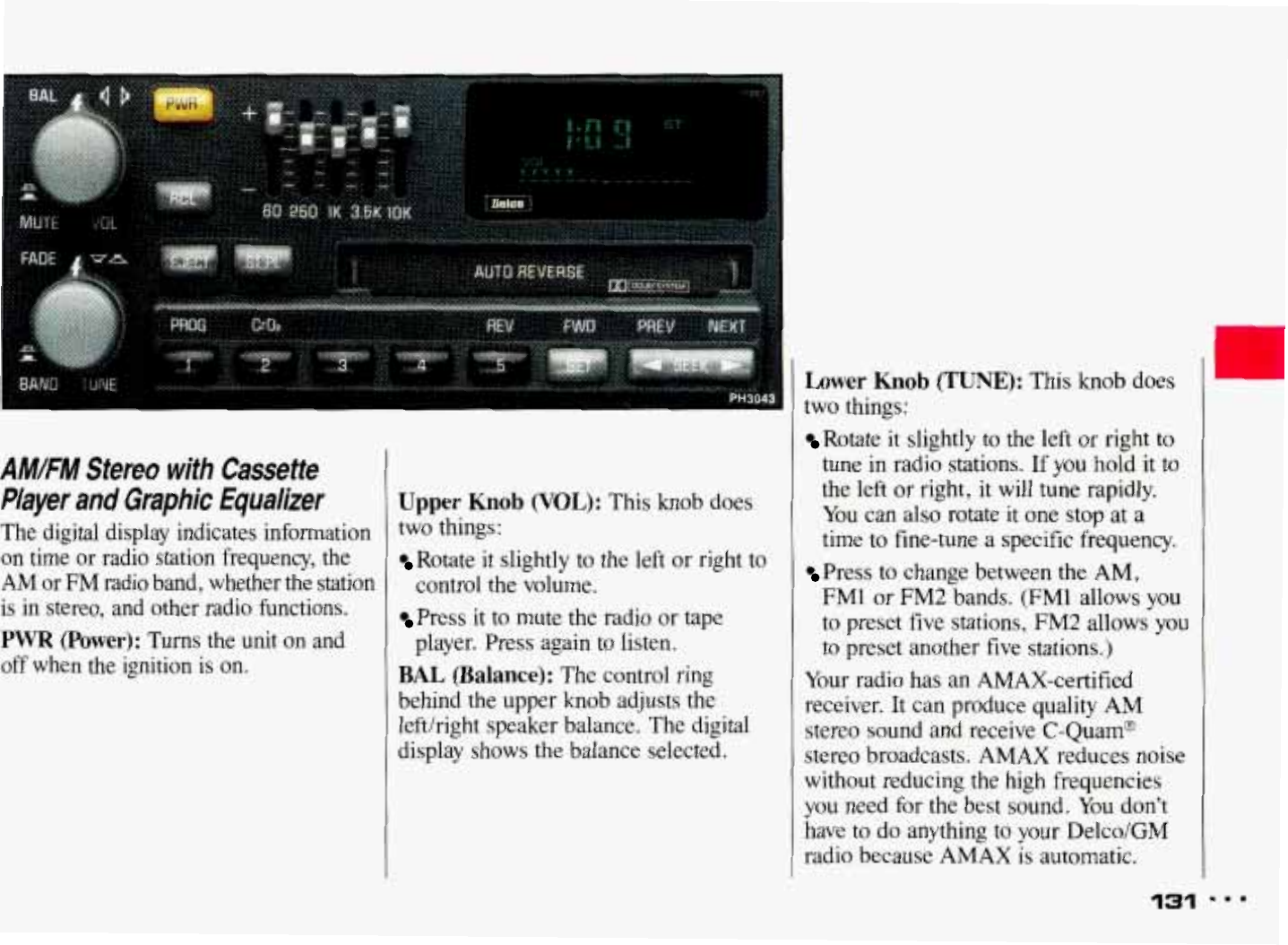 - AM/FM Stereo with Cassette Player and Graphic Equalizer