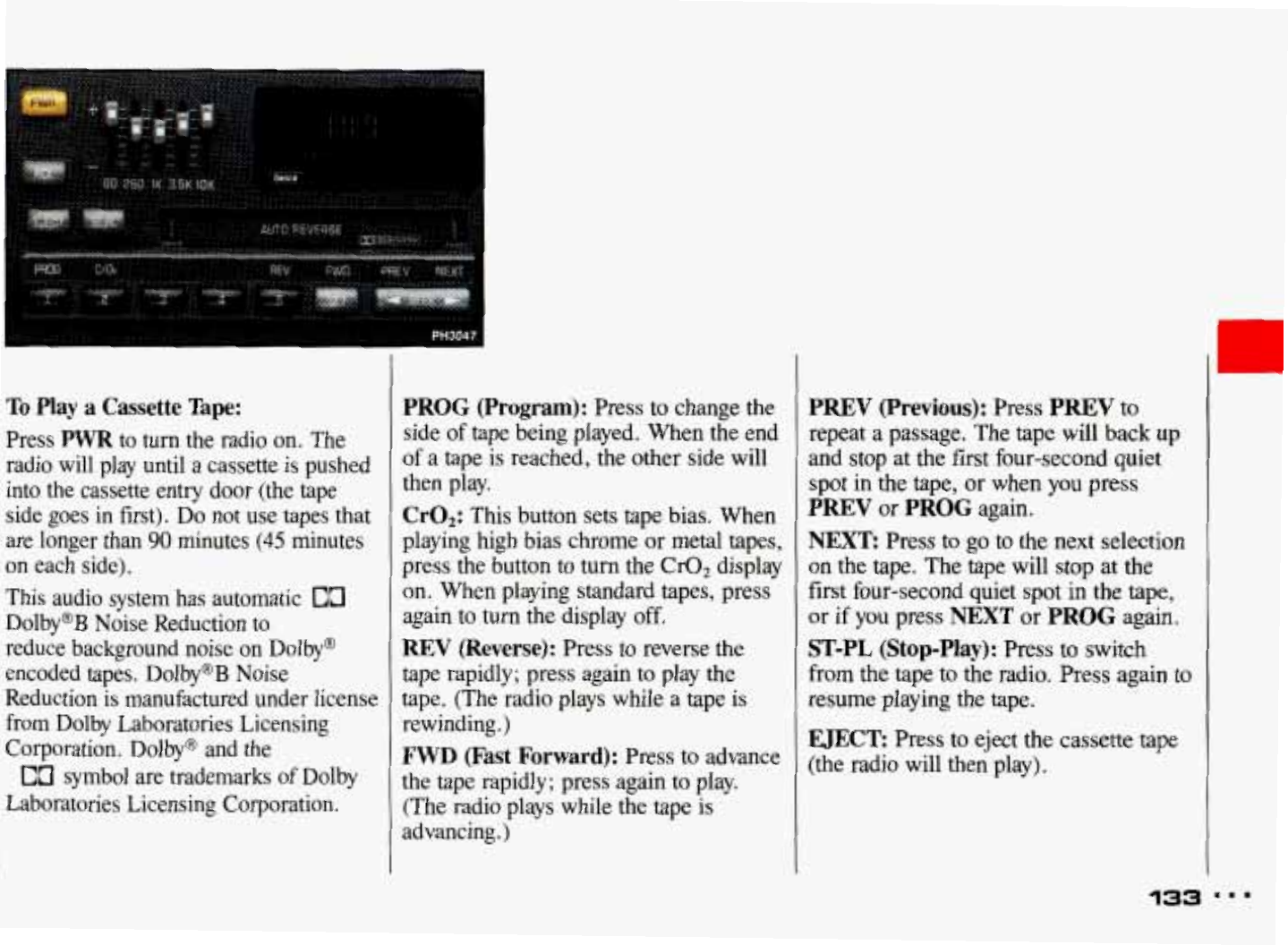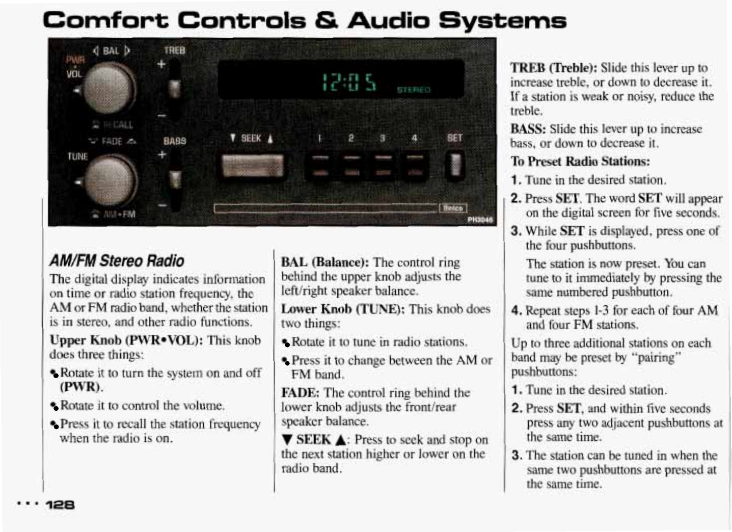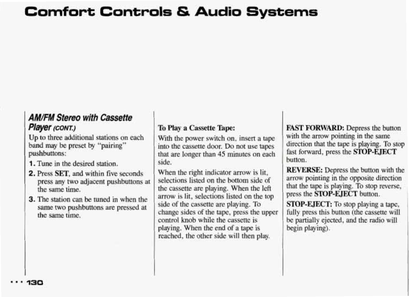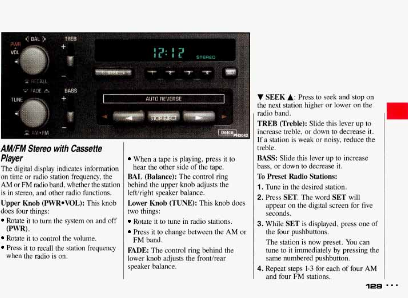 - AM/FM Stereo with Cassette Player and Graphic Equalizer