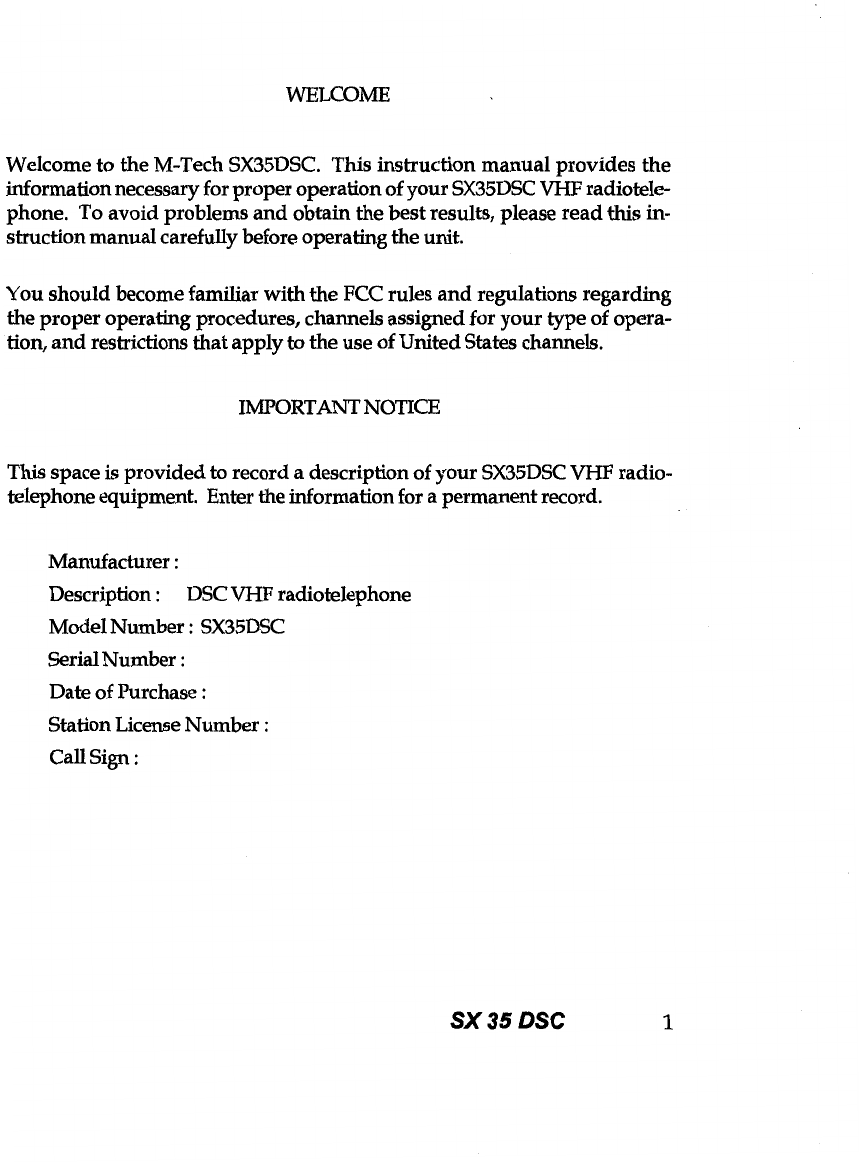 Pony Electric 8TQSX-35DSC MARINE RADIO User Manual USERS MANUAL