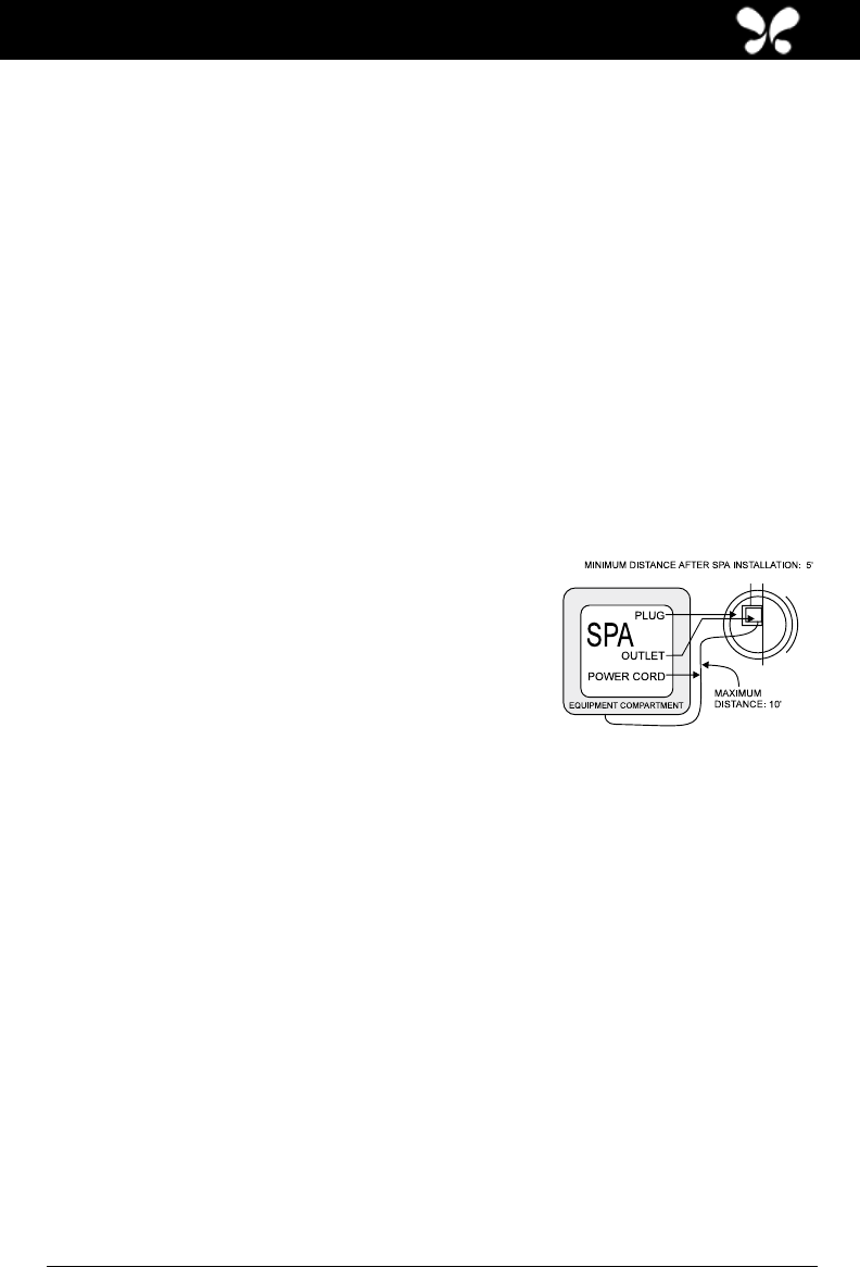 • Leave access to the entire front of the spa (the removable panel provides access to the spa’s equipment) for