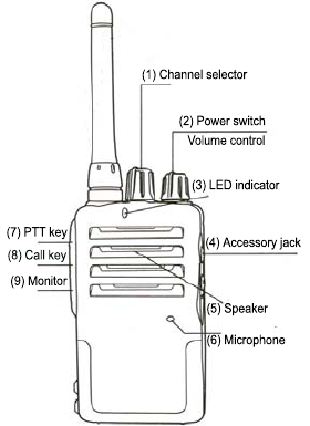 Note: When battery voltage becomes low, the LED Indicator on radio will turn solid red