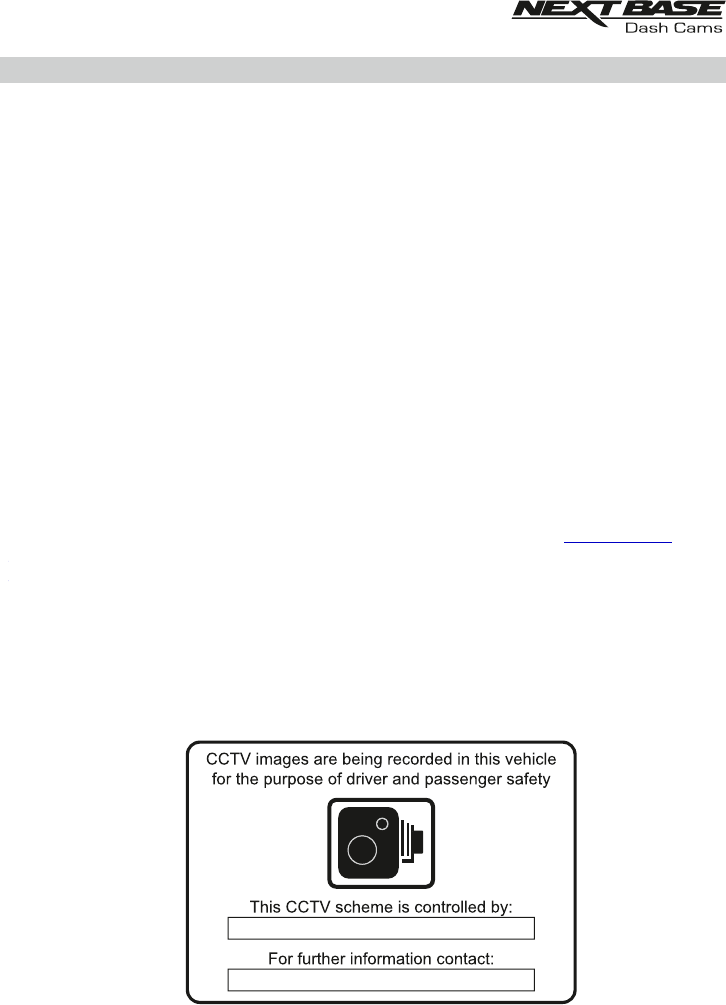 When using the NEXTBASE 380GW in a commercial vehicle you must ensure that you comply with