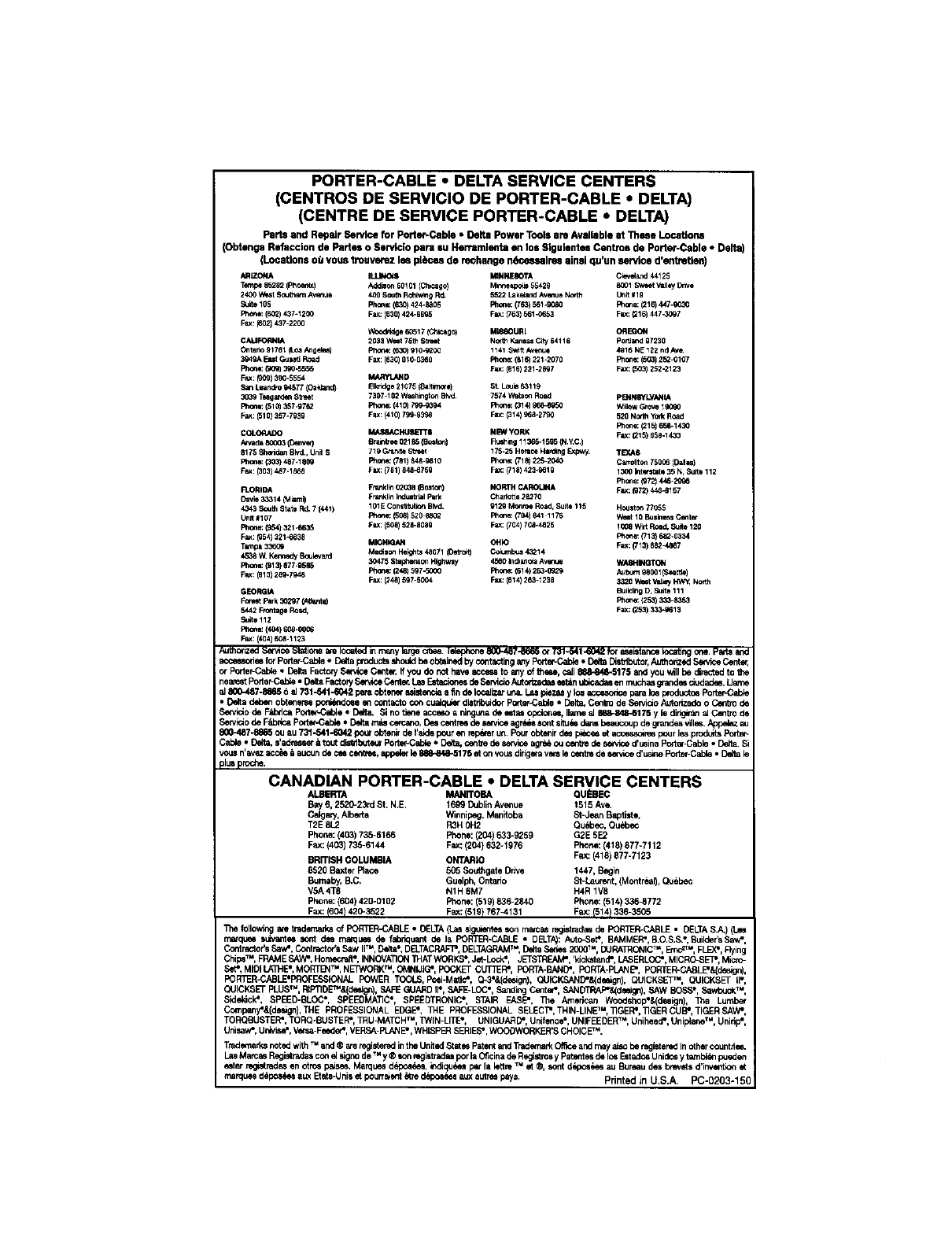CANADIAN PORTER-CABLE •DELTA SERVICE CENTERS