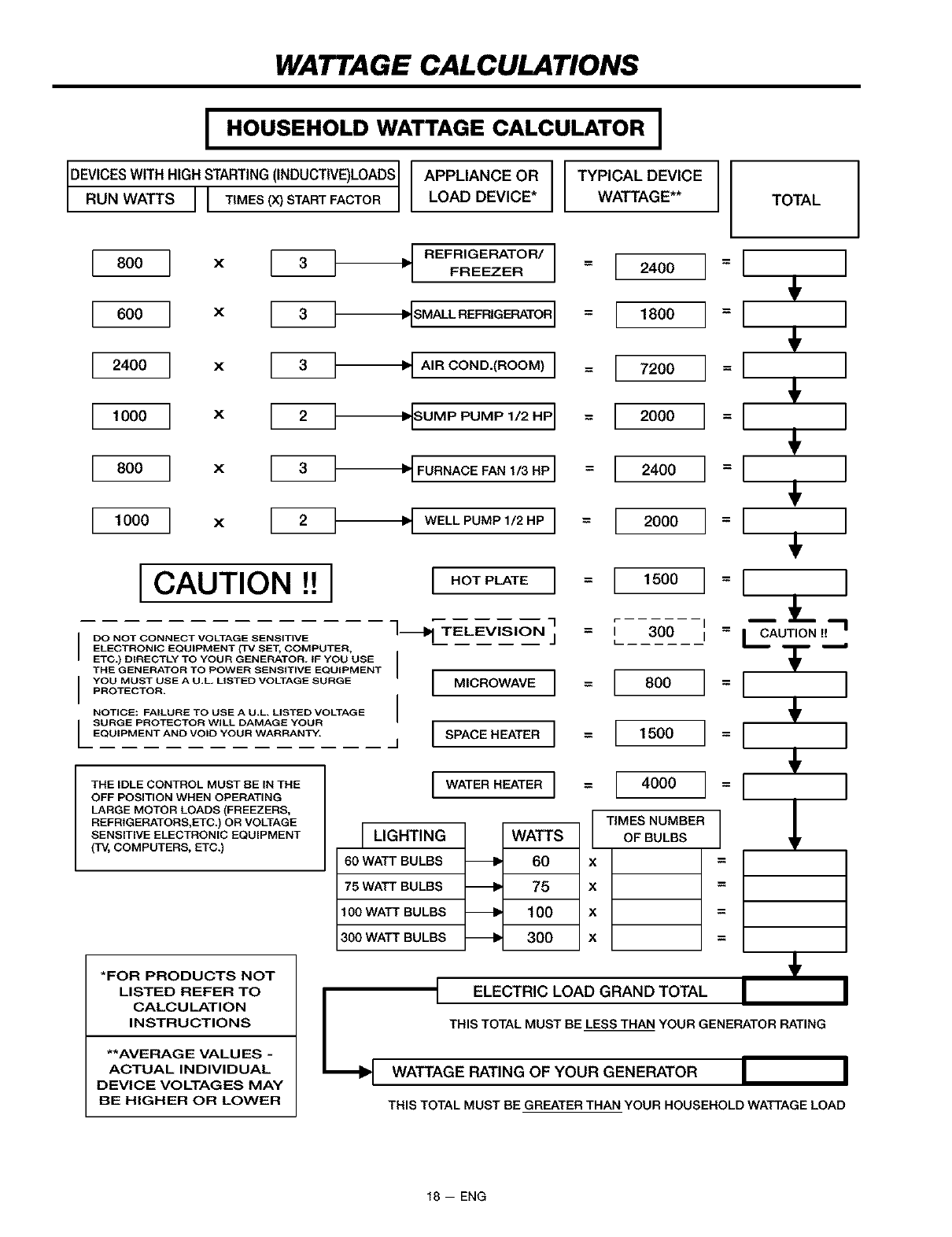THIS TOTAL MUST BE GREATERTHAN YOUR HOUSEHOLD WATTAGE LOAD