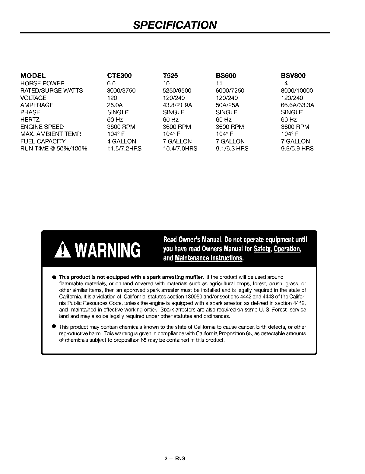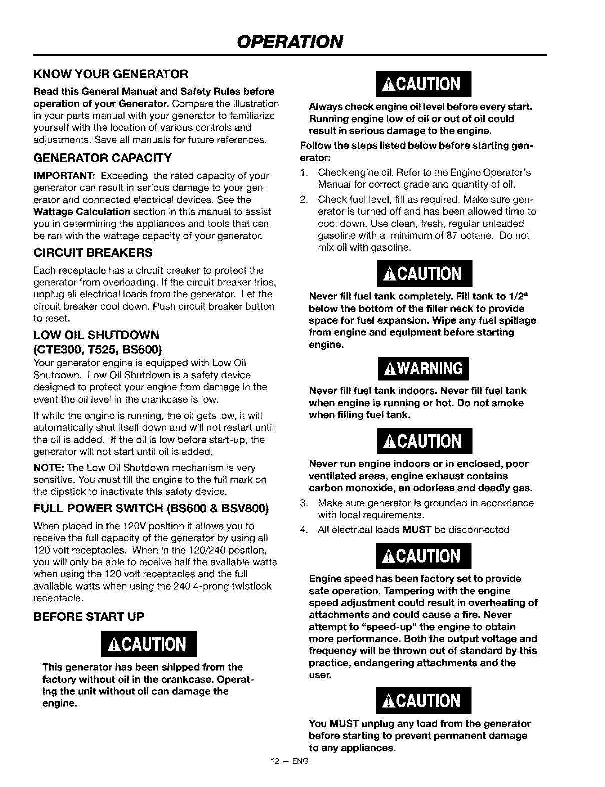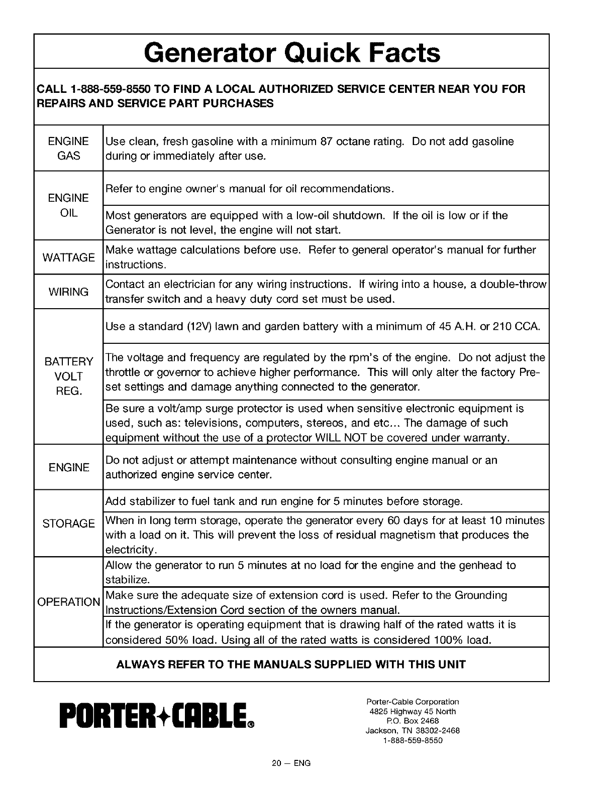 Porter Cable BS600 W 1 User Manual GENERATOR Manuals And Guides L0402317