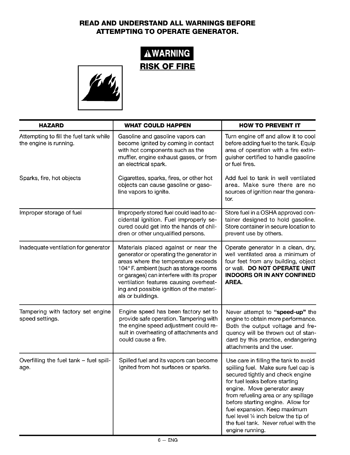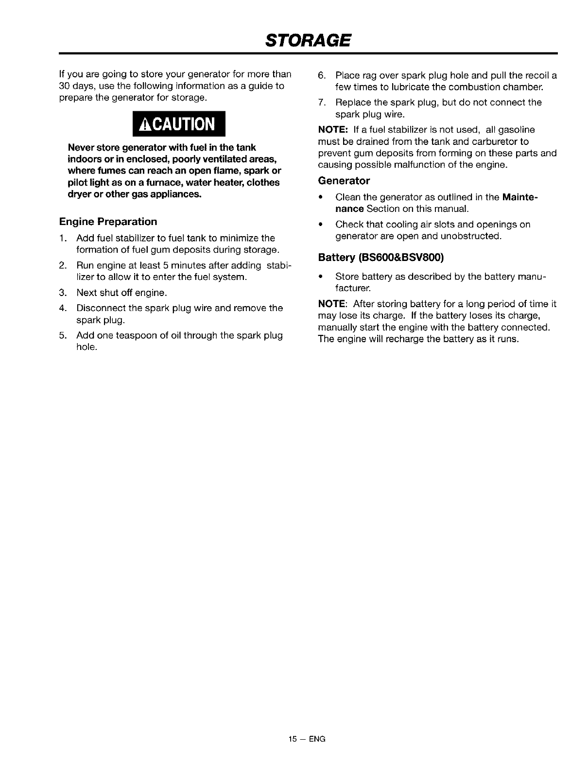 STORAGE When in long term storage, operate the generator every 60 days for at least 10 minutes