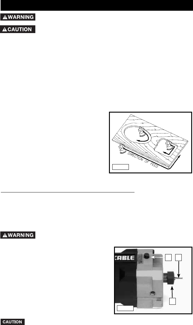 8. Allow the motor to reach full-speed. Feed the trimmer from right to left with