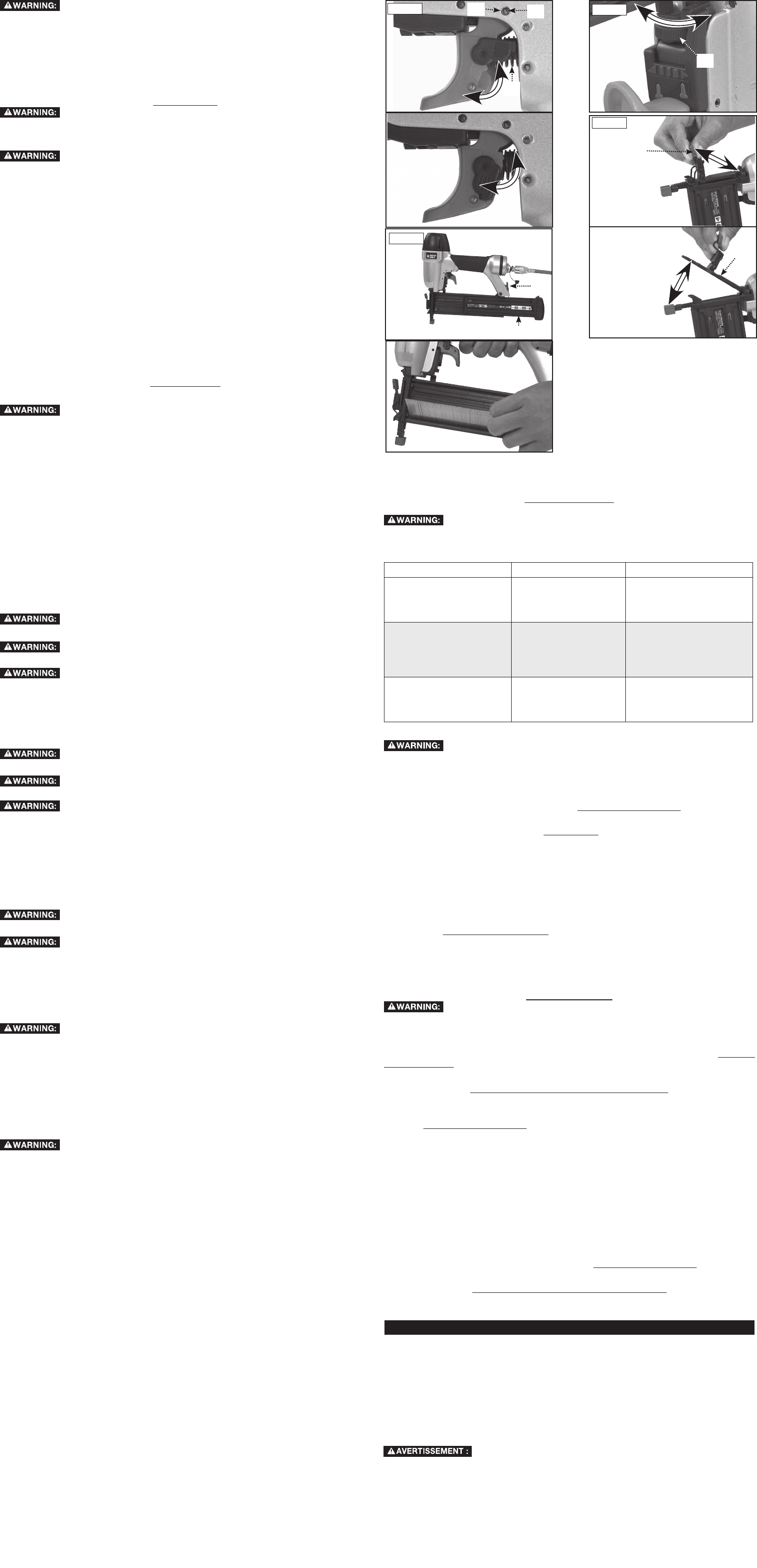 Saut de clous; alimentation intermittente Alimentation en air restreinte Vérifier l’alimentation pneumatique et les raccords