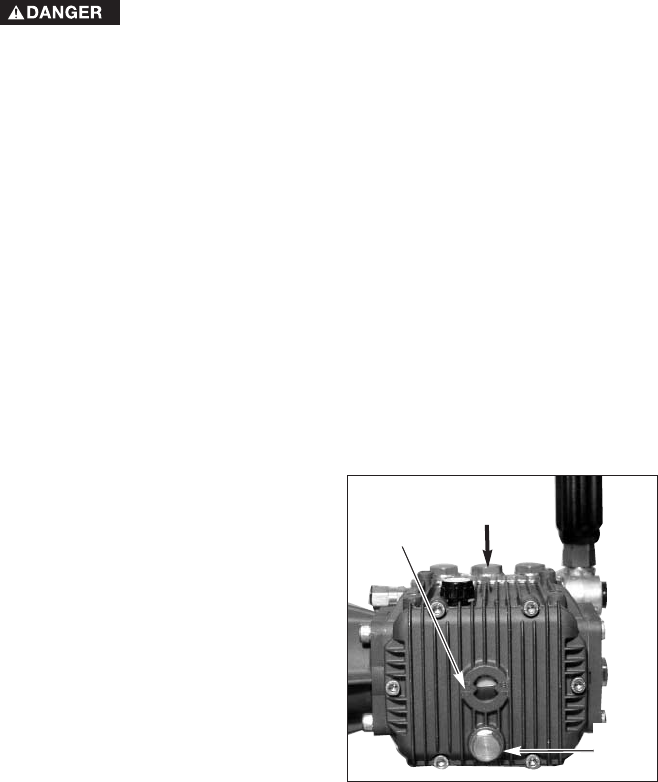 Don't allow water to freeze in pump, gun, wand or hoses.