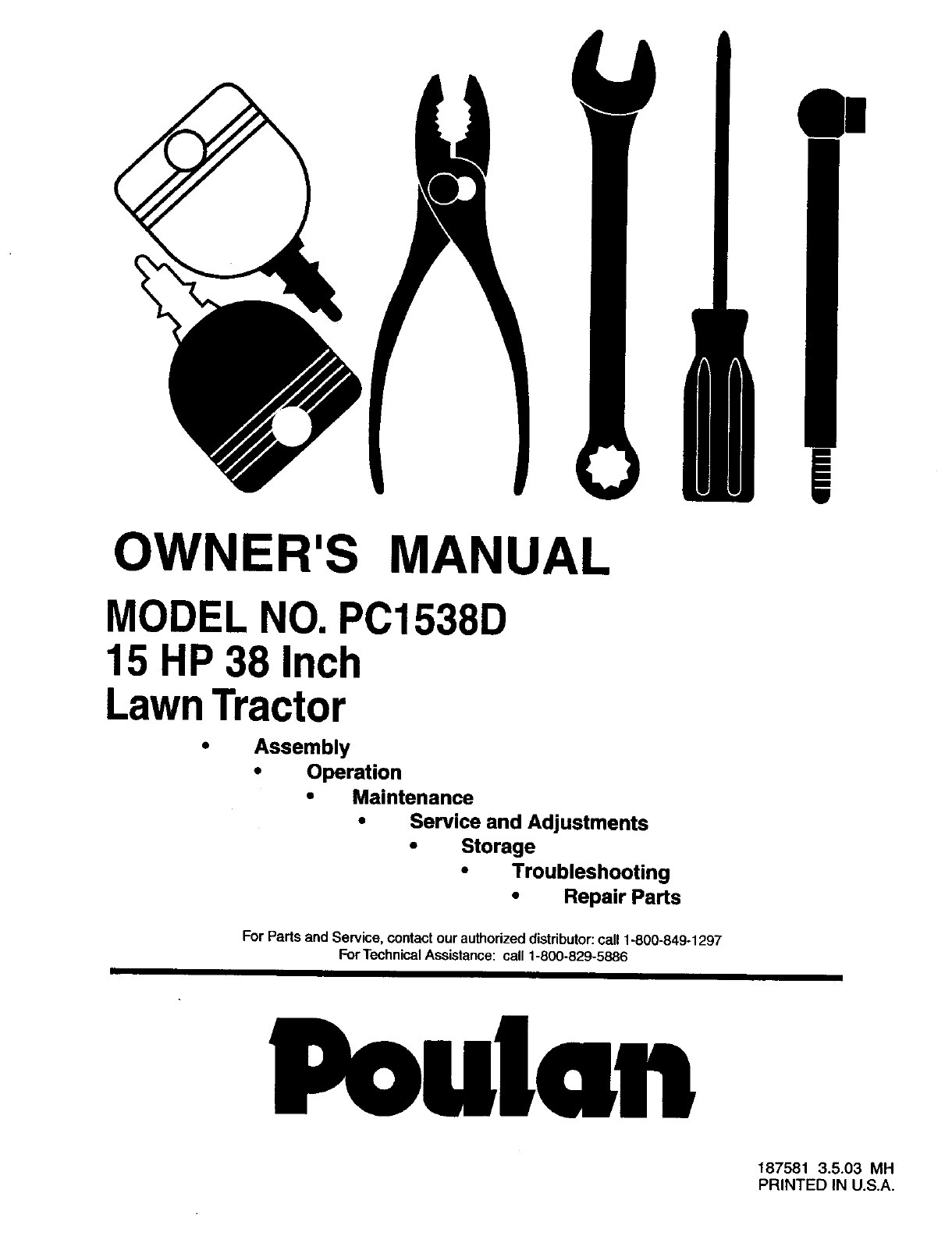 POULAN Lawn, Tractor Manual L0310503 POULAN Lawn, Tractor Owner's Manual, POULAN Lawn, Tractor installation guides