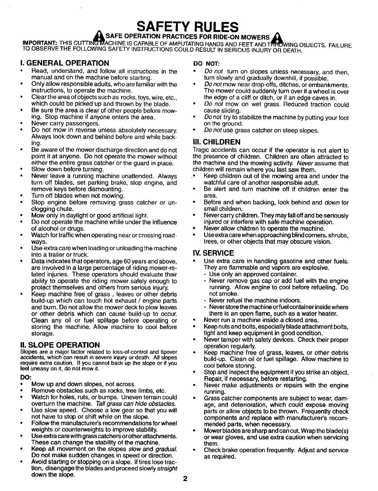 _i SAFE OPERATION PRACTICES FOR RIDE-ON MOWERS ,_