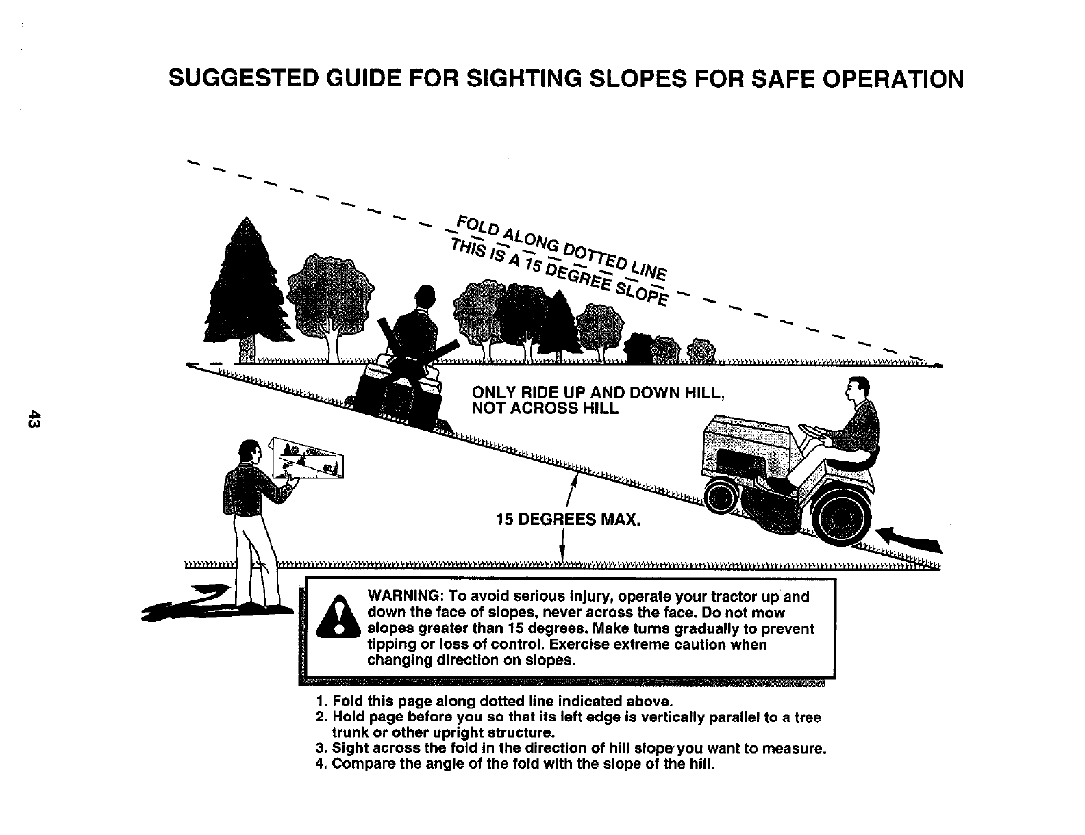 slopes greater than 15 degrees. Make turns gradually to prevent