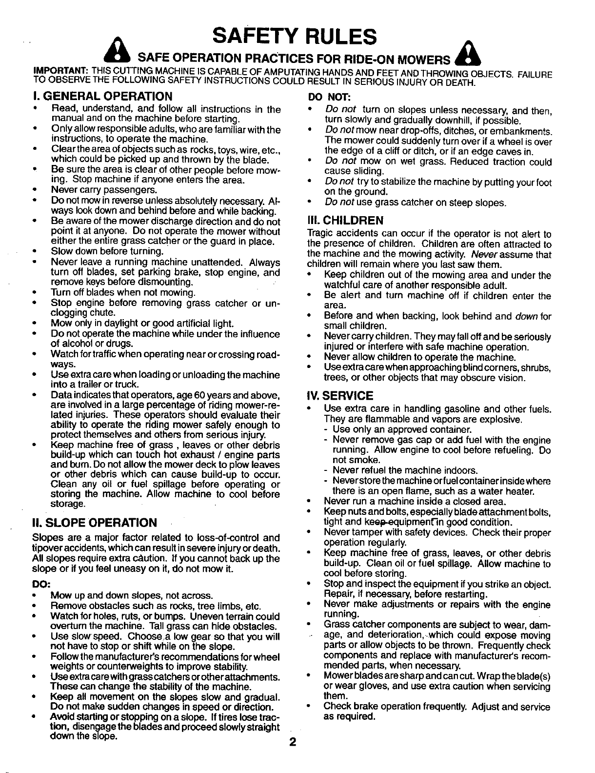 •Do not mow near drep-offs, ditches, or embankments.