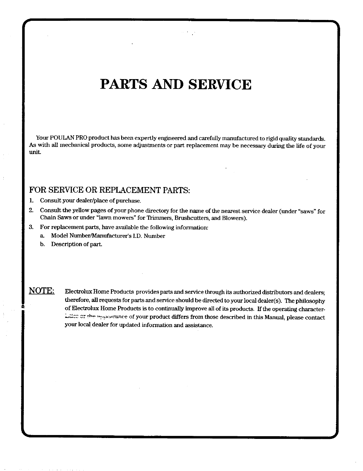 Your POULAN PRO product has been expertly engineered and carefully manufactured to rigid quality standards.