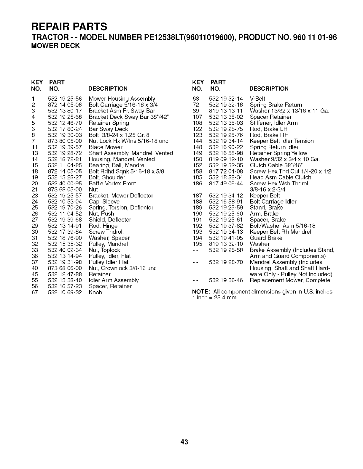 1 532 19 25-56 Mower Housing Assembly 68 532 19 32-14