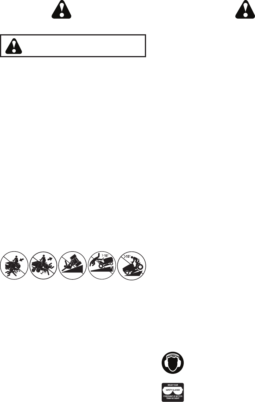 SIEMPRE USE PROTECCIONES PARA LOS OJOS MIENTRAS OPERE ESTE TRACTOR