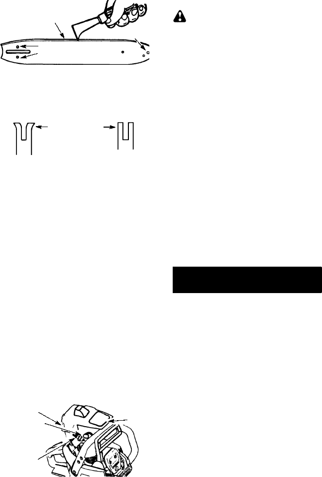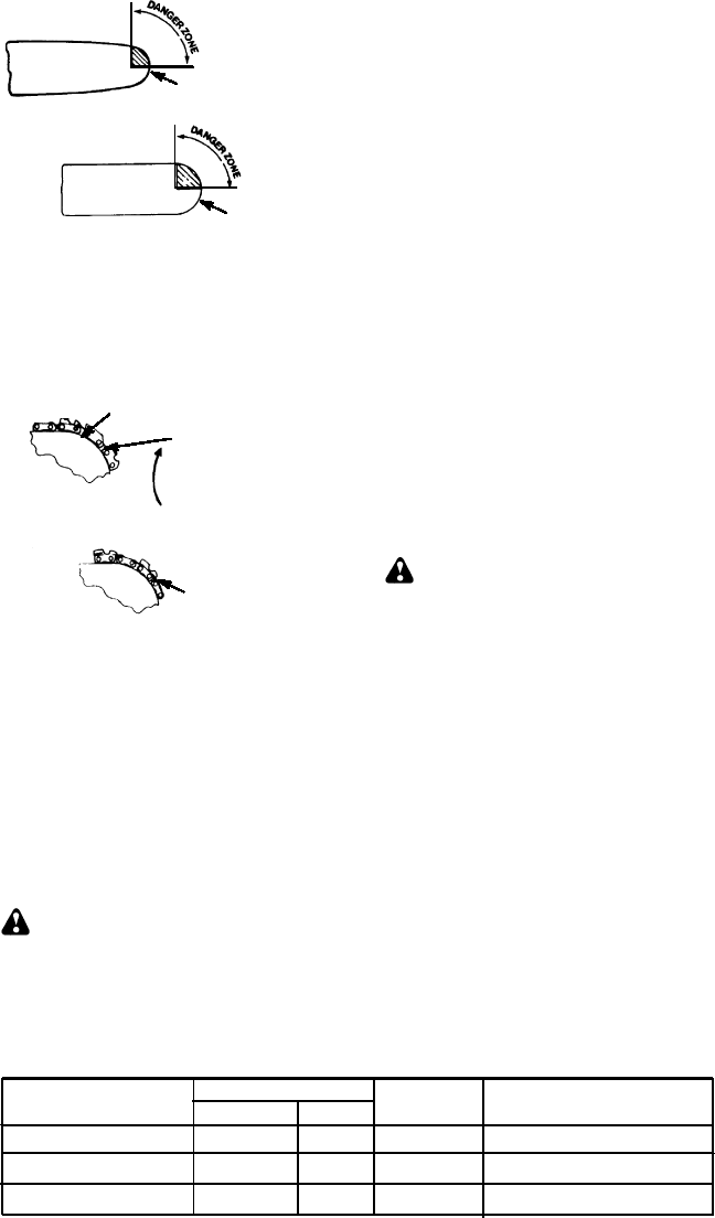 should be avoided; tip contact may cause the guide bar to