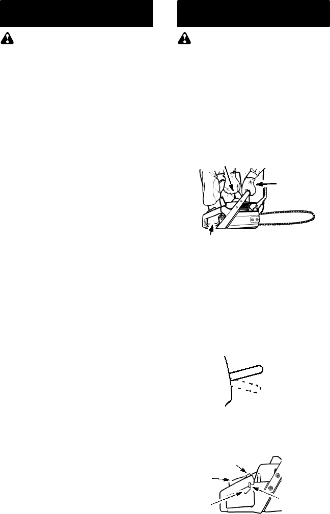 Always use two hands when operating the chain saw.