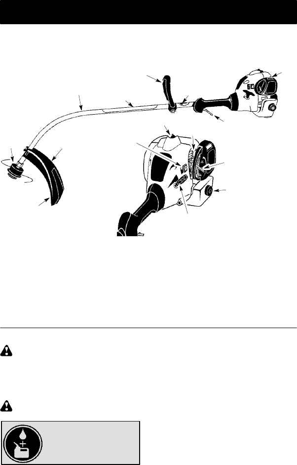 Use unleaded gasoline and two--stroke oil mixed at a ratio of