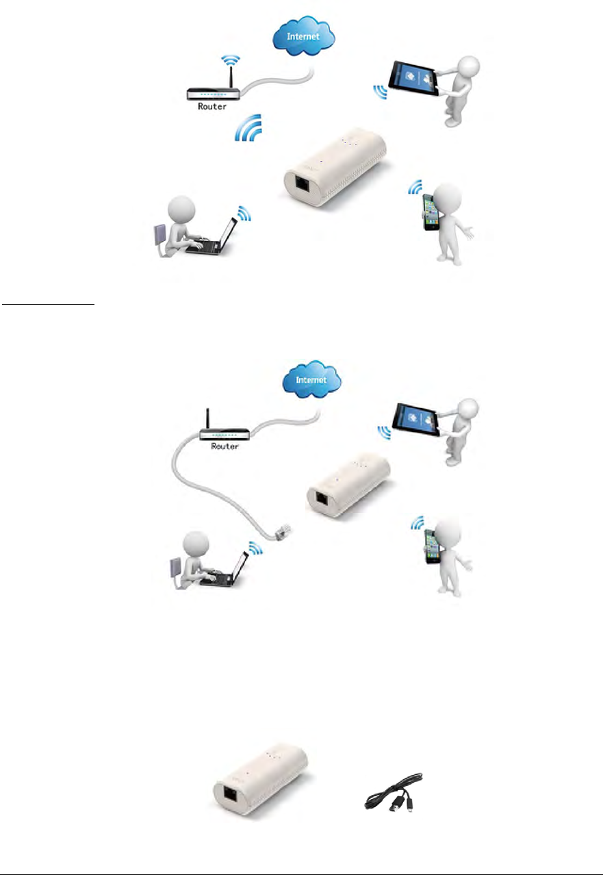 Router/Access Point. The Wi-Fi Device will serve as host. With the built-in DHCP function, it can