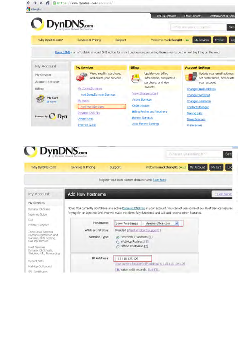 Let’s take dyndns.org as an example. Register an account in https://www.dyndns.com free of charge,