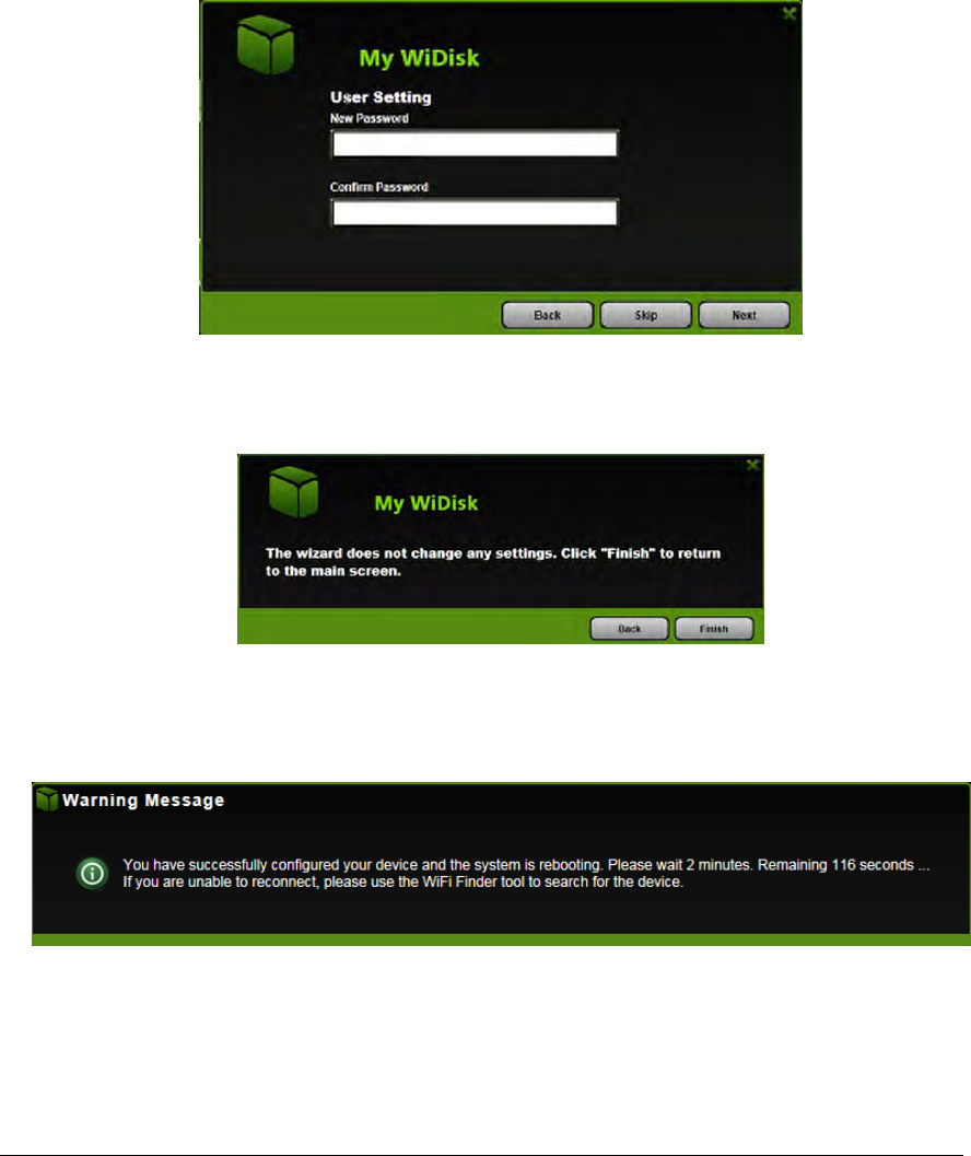 The Warning Message window will appear. The Wi-Fi SD/USB will automatically reboot once the